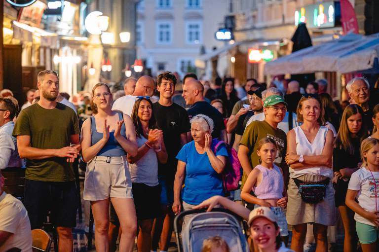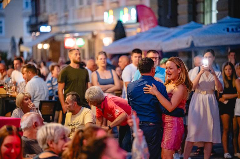 Poštna ulica se je včeraj spremenila v časovni stroj, ki je obiskovalce ponesel za 50 let v preteklost. Na oder je stopil evrovizijski Duo Platin, ki je postregel s pestrim naborom legendarnih skladb.