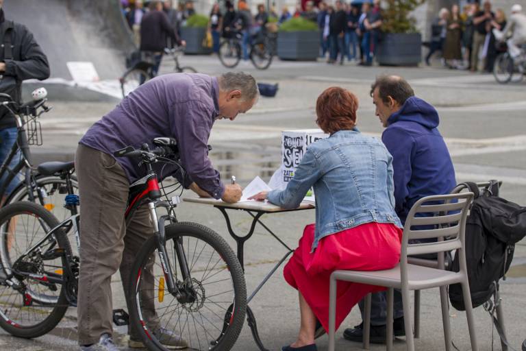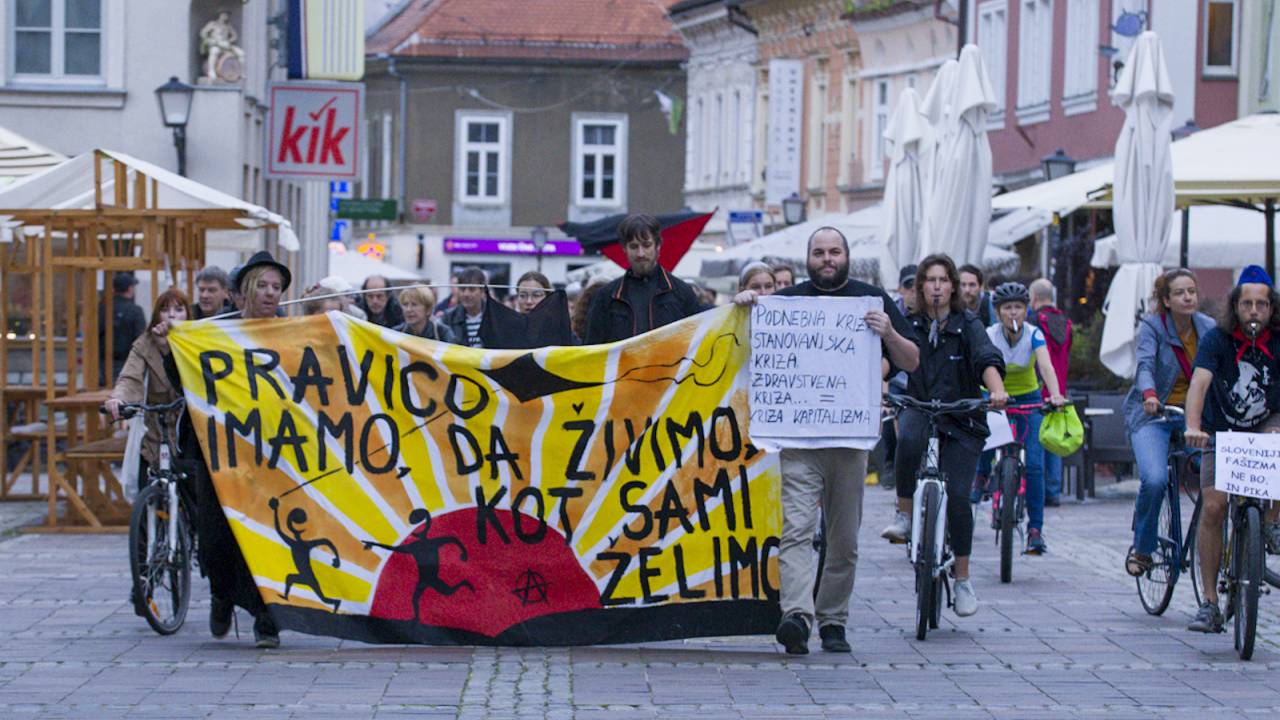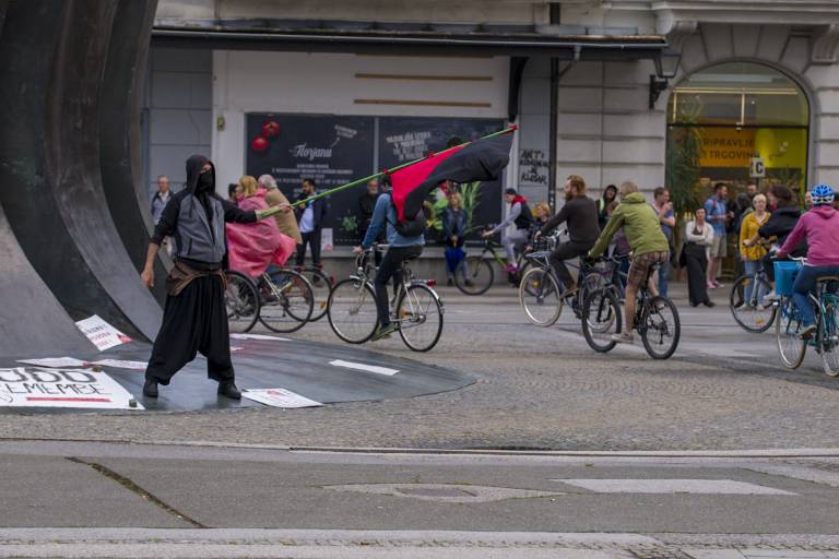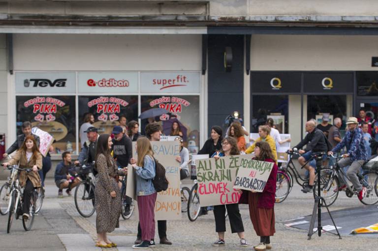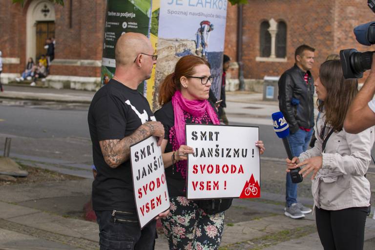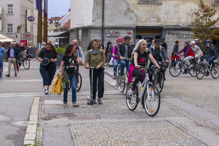 Tudi tokrat so se zbrali ob 19. uri na Trgu svobode in s kolesi krožili okoli spomenika NOB. Skupno se je protestnikov zbralo okoli 350.