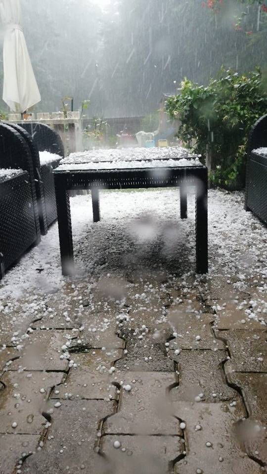 Tako kot so napovedali vremenoslovci je naše kraje zajelo močno deževje, padala je tudi toča, ki je bila ponekod uničujoča.