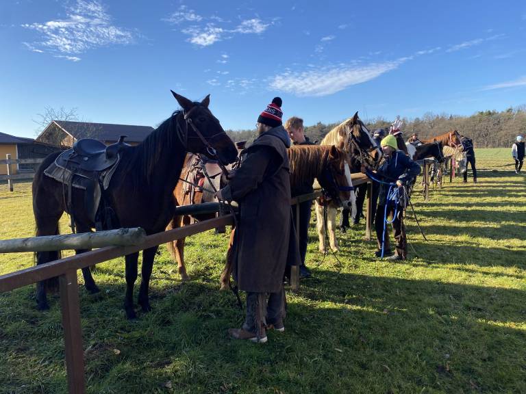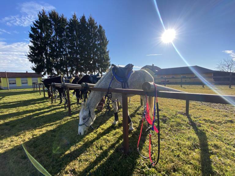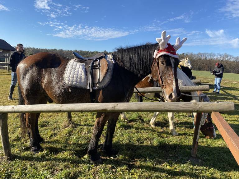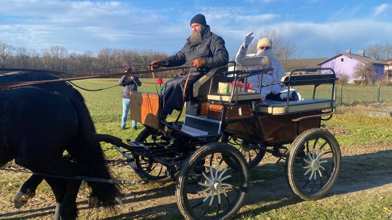 Za presenečenje pa je poskrbel Dedek Mraz, ki se je pripeljal s kočijo in obdaril pridne otroke. Zadišalo je tudi po langaših in kuhanemu vinu, lačni pa niso ostali niti konji.