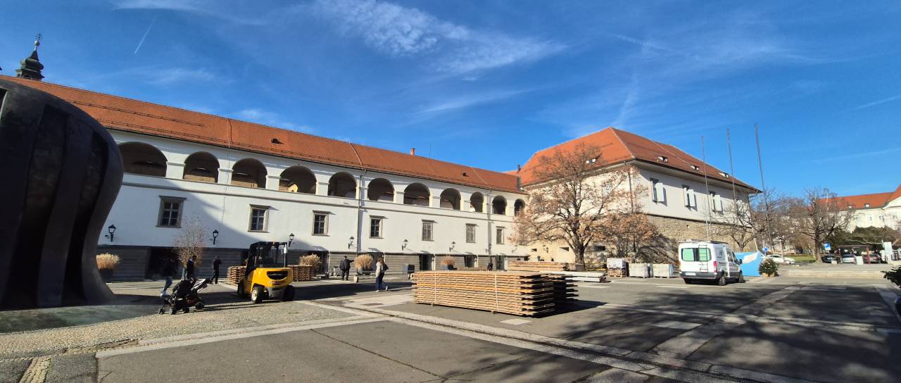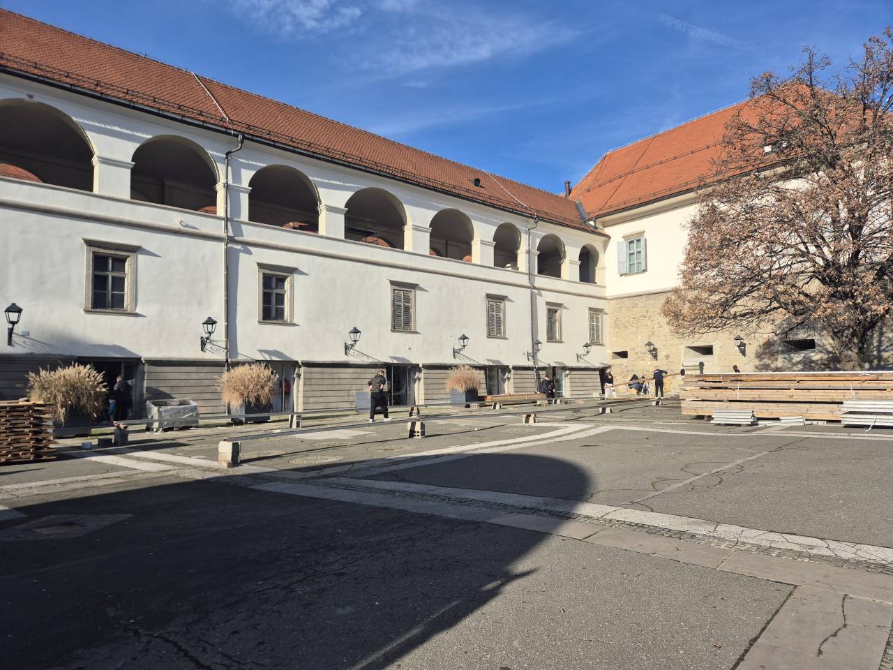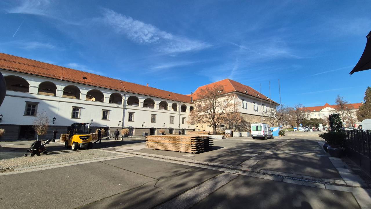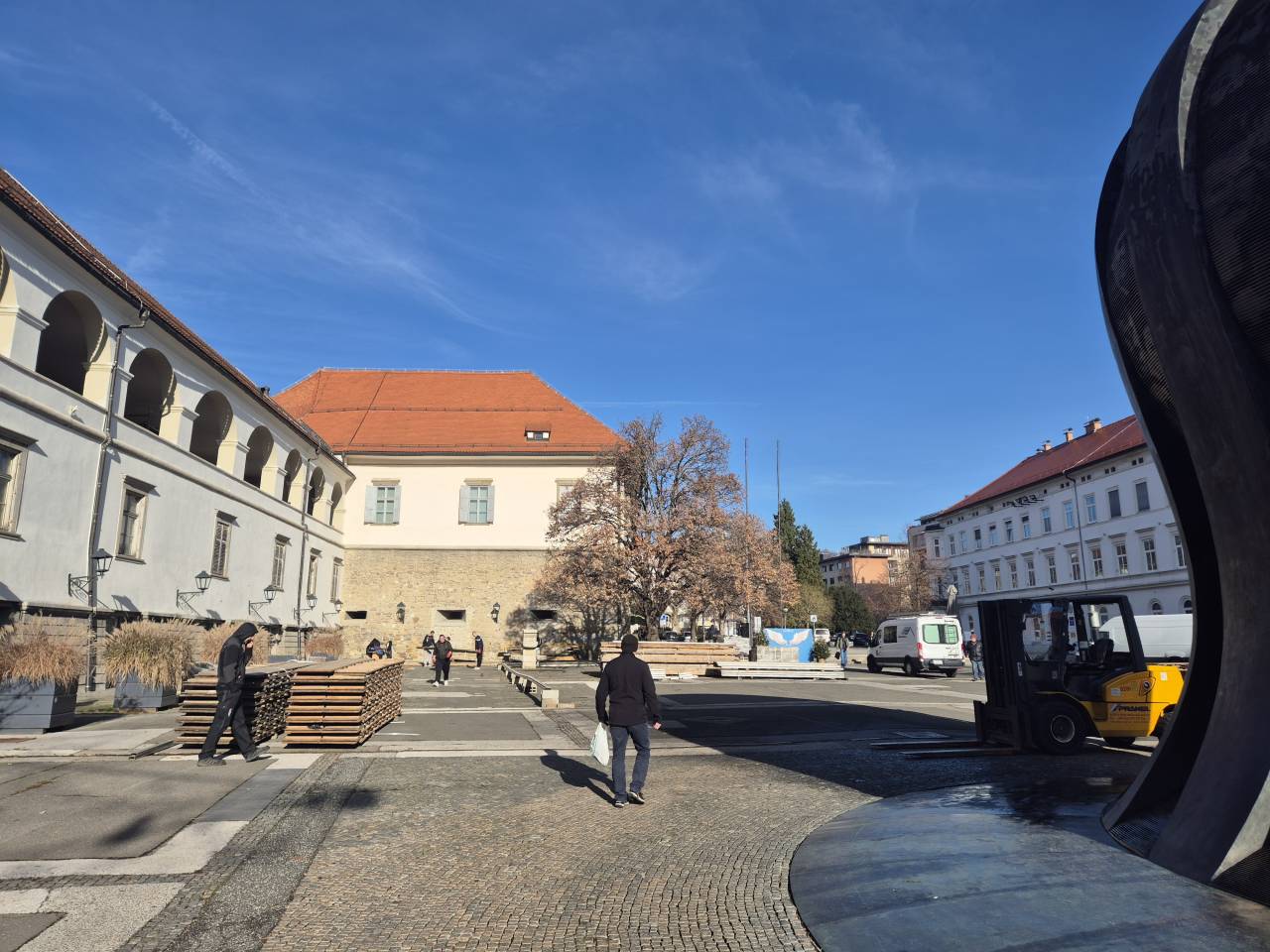 Na Trgu svobode v Mariboru se je začelo urejanje prizorišča, kjer bo prihodnji teden zaživelo Čarobno drsališče. Delavci so dopoldne na trg pripeljali prve lesene plošče in konstrukcijske elemente, s katerimi bodo v naslednjih dneh oblikovali ledeno ploskev.