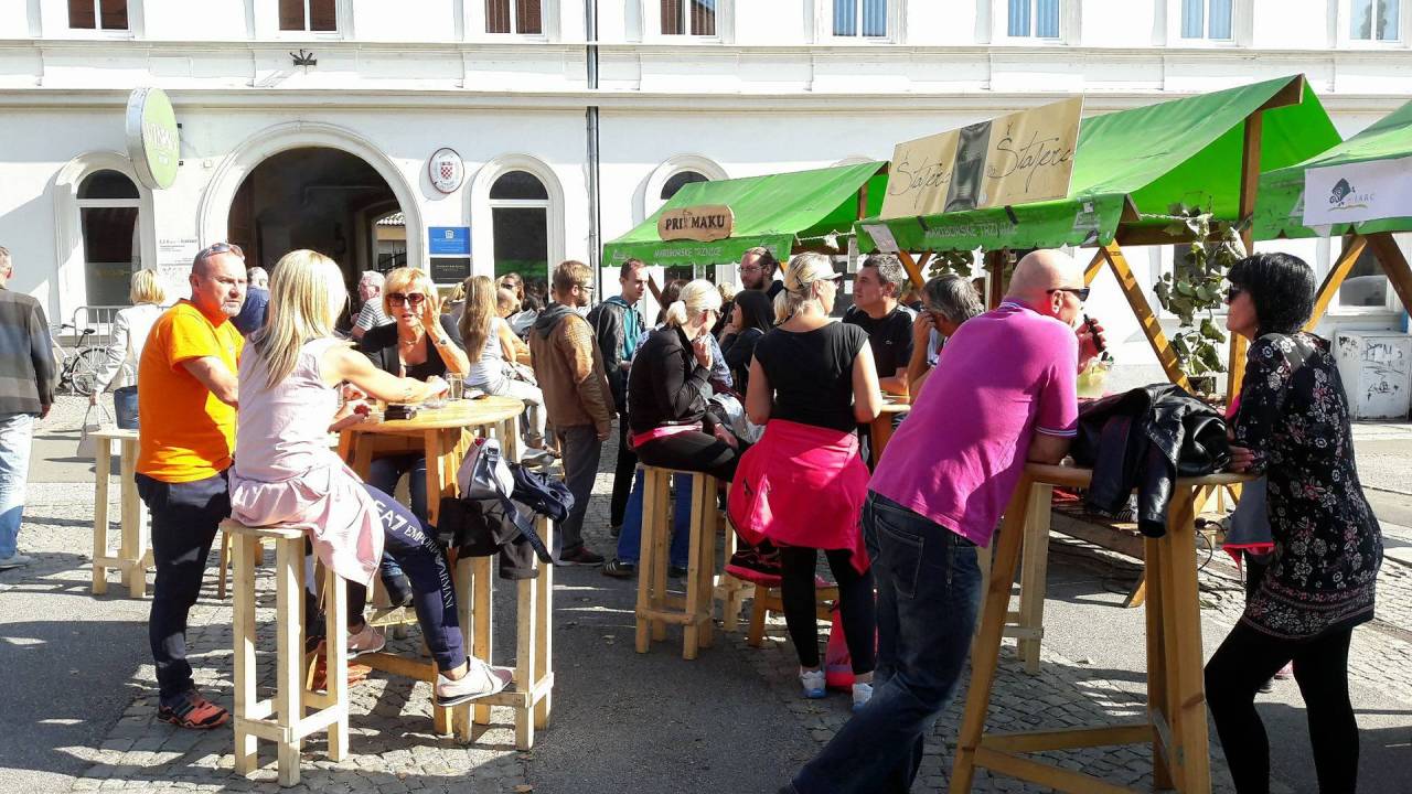 Po tem, ko so na Lentu s sirom in medom poskrbeli za želodčno oblogo, smo se odpravili na Trg Svobode, kjer se pred Vinagovo kletjo odvija Špricer Fest.