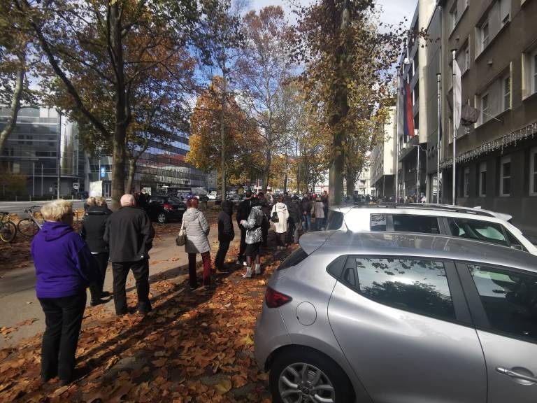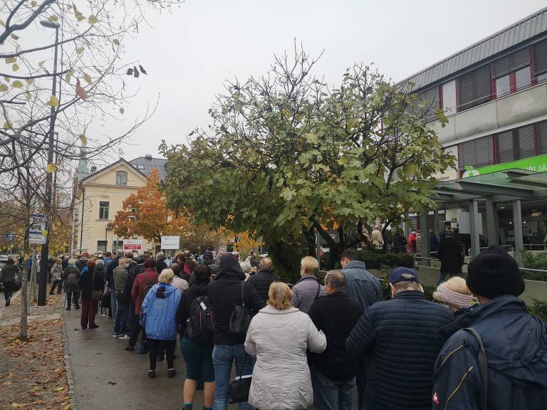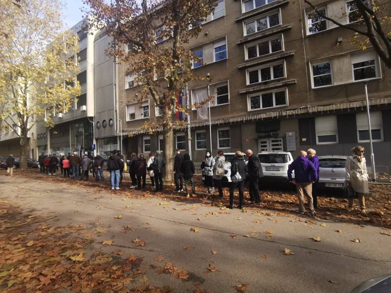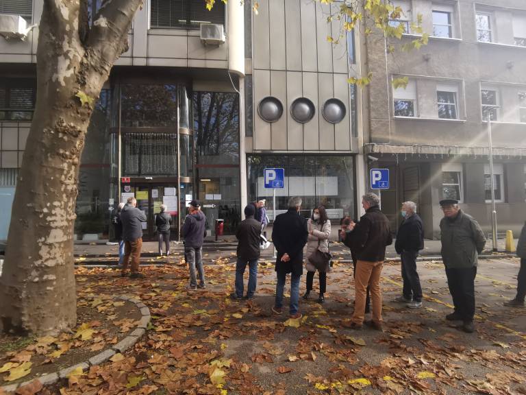Povišano število okužb s koronavirusom je očitno podžgalo k cepljenju marsikaterega Ljubljančana. Pred Zdravstvenim domom Ljubljana – Center na Metelkovi ulici se že celo jutro vije dolga vrsta ljudi, ki čakajo na cepljenje.