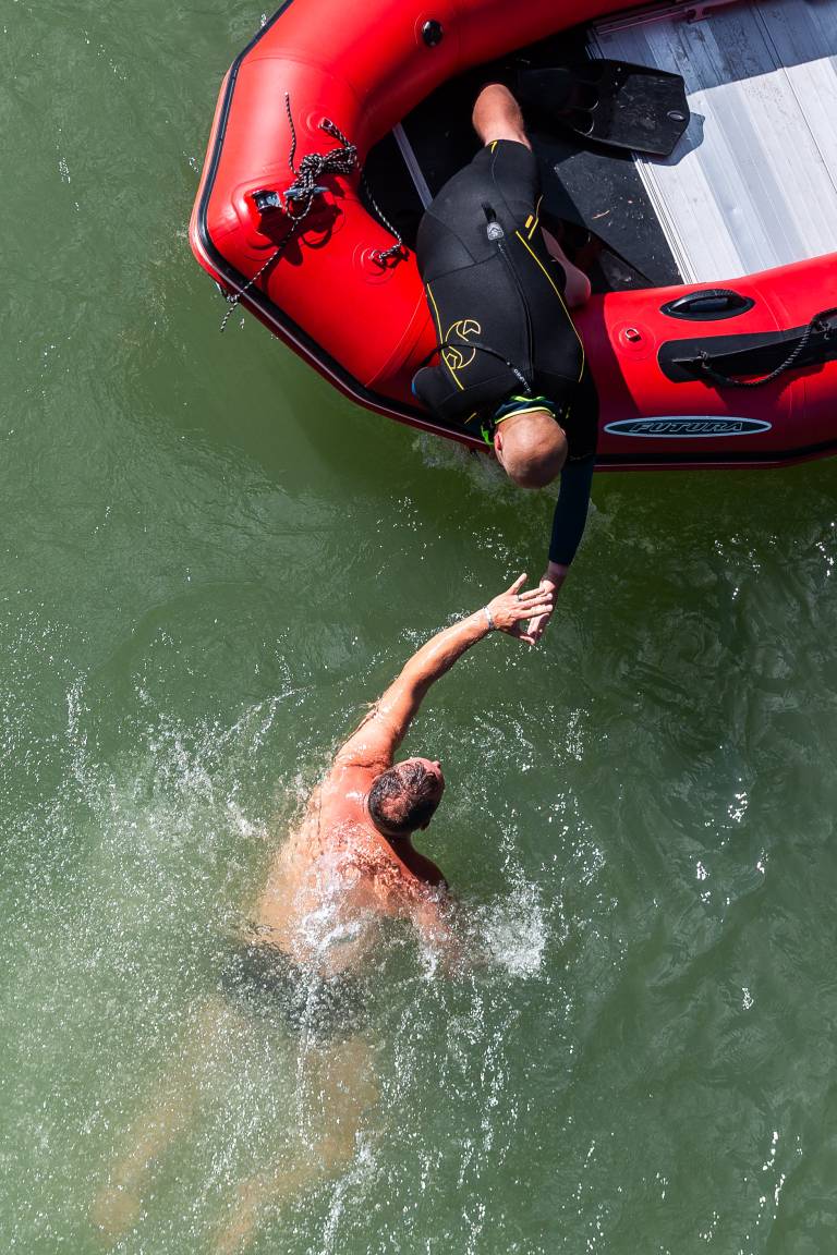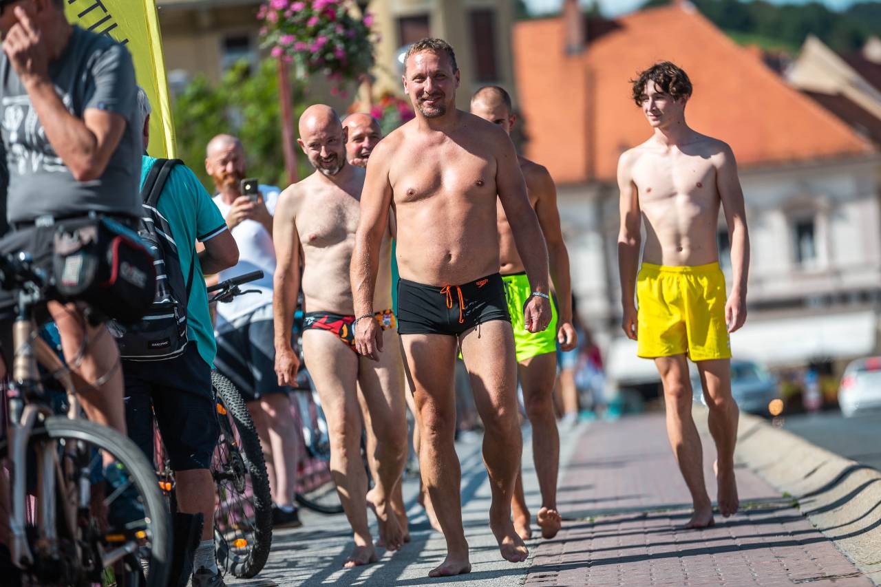 Neverjetni akrobati skačejo z višine 15 metrov, globina reke Drave pa na tem predelu znaša sedem metrov.