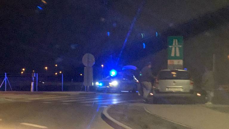 Policisti so zaprli cesto in preverjajo promet v krožišču pred vasjo Turnišče.