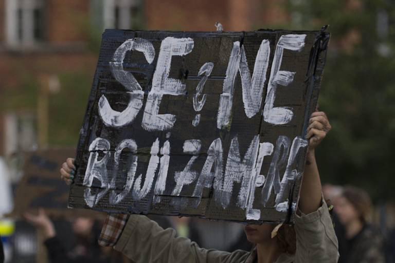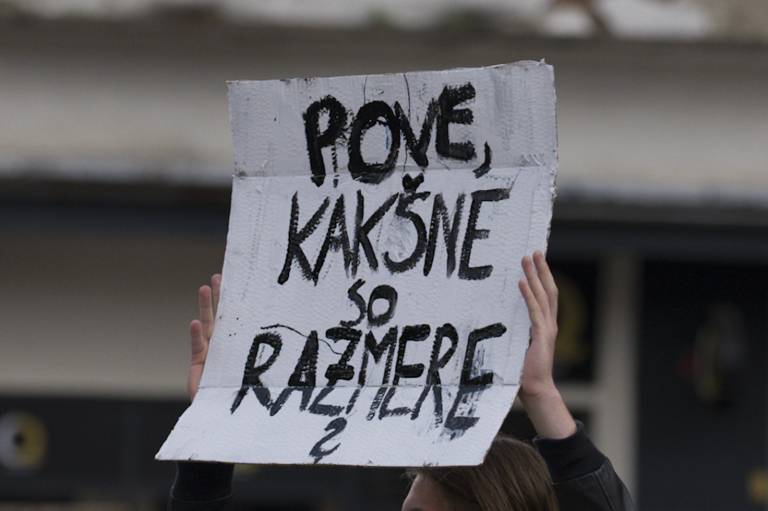 Številni protestniki so s seboj prinesli transparente. Na njih so bili napisi, kot so: