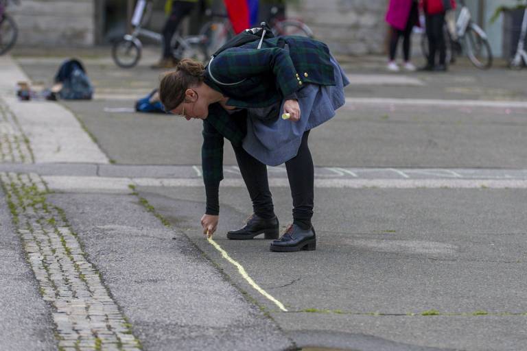 Nekateri protestniki so tokrat protestirali še na en način - risali so s kredami. Risanje s kredami po tleh je postal še en način protestiranja po tistem, ko so policisti zaradi tega početja začeli obravnavati protestnike. Ministrstvo za notranje zadeve je nato pojasnilo, da se risanje po tleh s kredo šteje kot kršitev zakona o javnem redu in miru, ki v 13. členu določa, da je za pisanje ali risanje po zidovih ali drugih javno dostopnih krajih zagrožena globa.