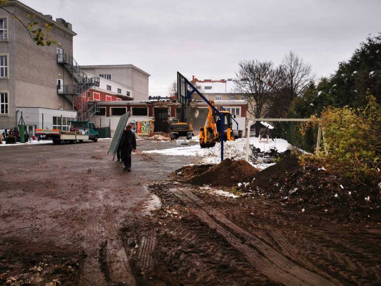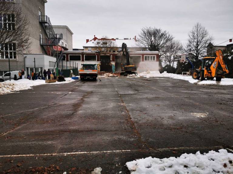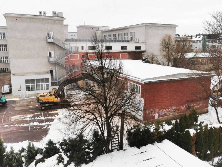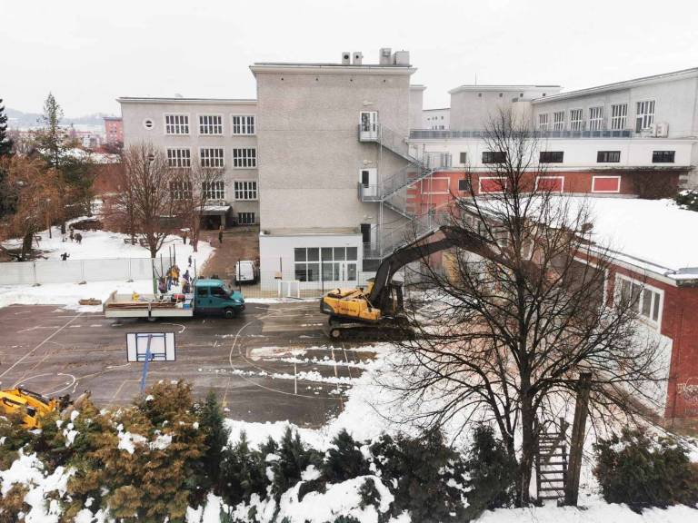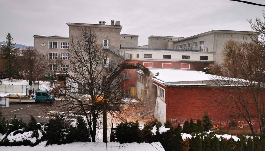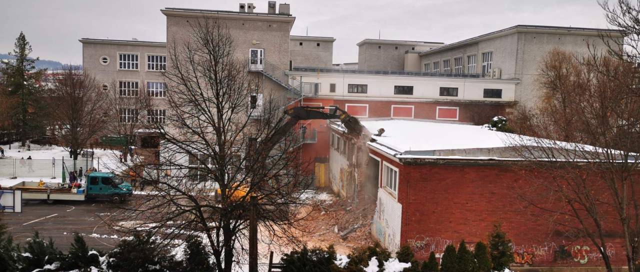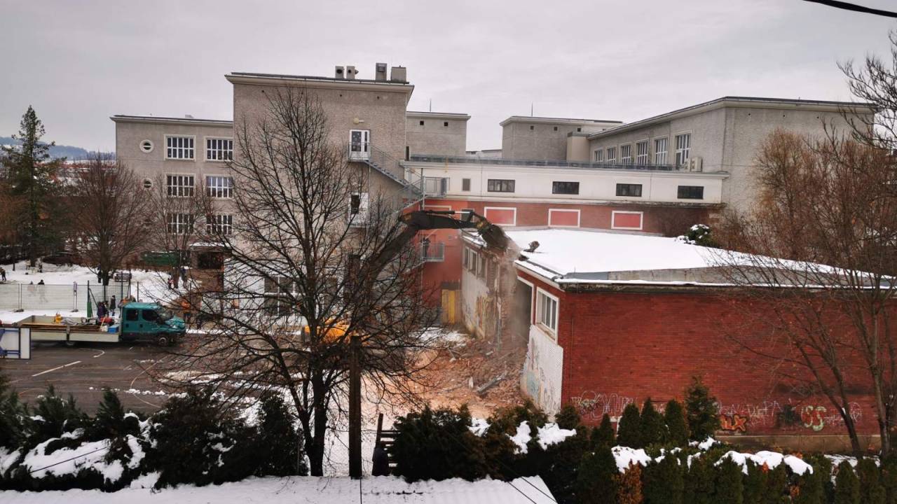 Osnovna šola Franceta Prešerna Maribor je danes pričela z rušitvenimi deli na stari telovadnici.