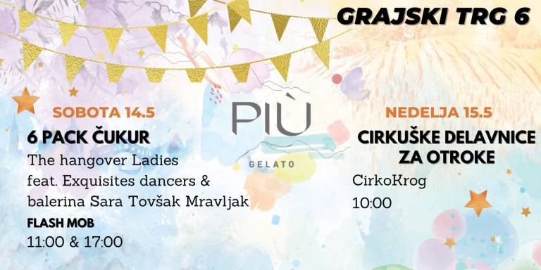 Sladoledarna PIÙ se je iz Glavnega trga preselila na novo lokacijo. Ob otvoritvi so pripravili pestro dvodnevno dogajanje. V soboto je za zabavo poskrbel 6 Pack Čukur, v nedeljo pa je najmlajše obiskal cirkusant.