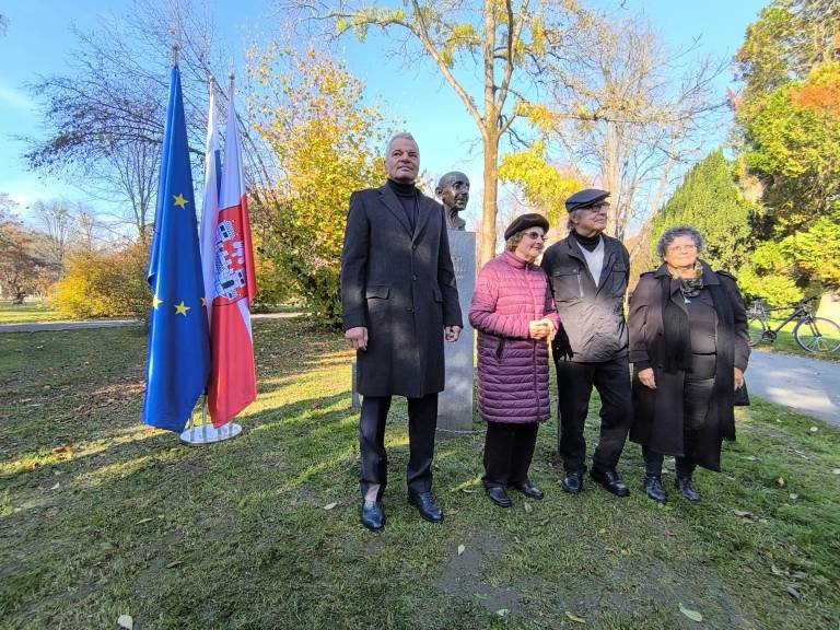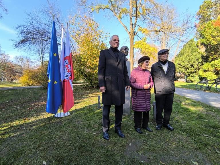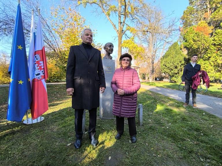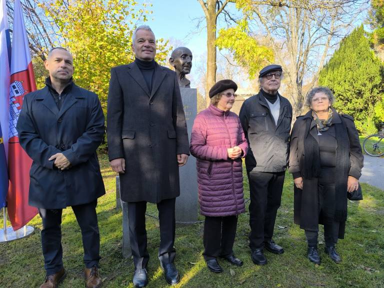 Tako hvala vsem, ki ste kakorkoli pomagali, da lahko njegova družina danes ponovno ponosno stoji ob kipu človeka, ki bi danes praznoval 127. rojstni dan,« je ob razgrnitvi dejal župan Saša Arsenovič.