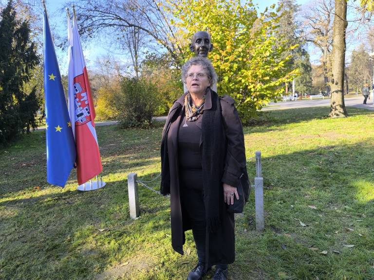 Tako kot prvotni bronasti portret je tudi tega ustvarila akademska kiparka Alenka Vidrgar.