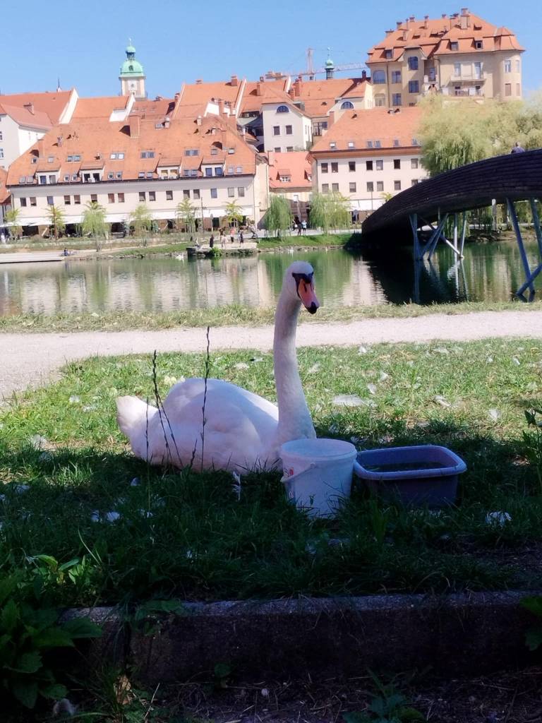 Skrbni prostovoljci so v uredništvo Mariborinfo sporočili, da gre labod Oli v azil.