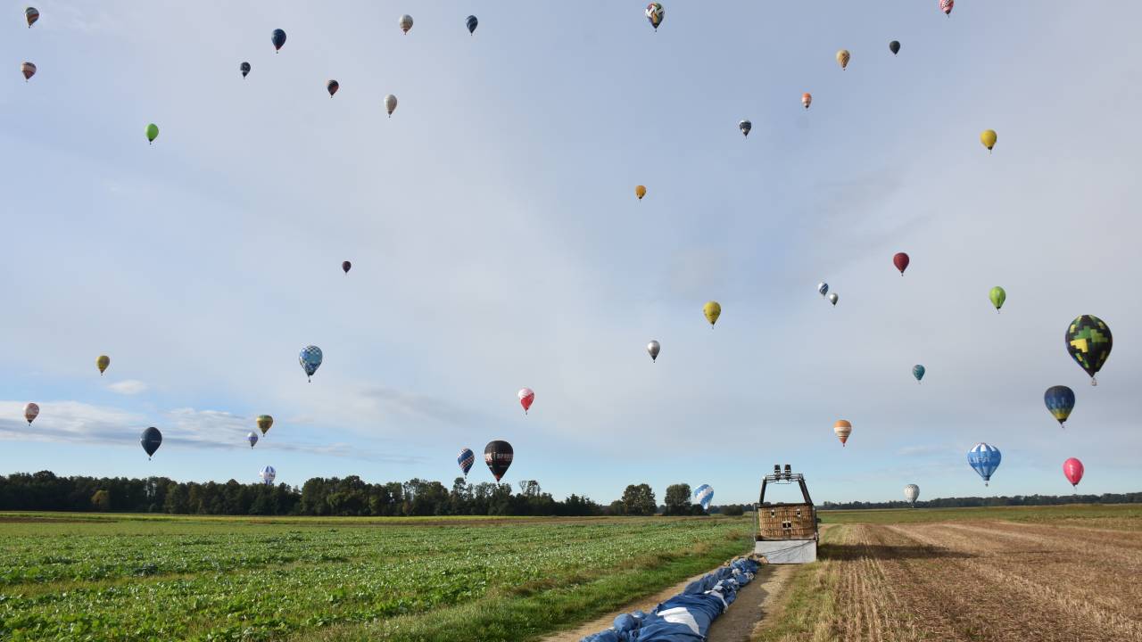 Čez nekaj trenutkov že letimo nad prekmursko ravnico. V družbi tekmovalnih balonarjev se dvignemo vse do 1100 metrov višine.