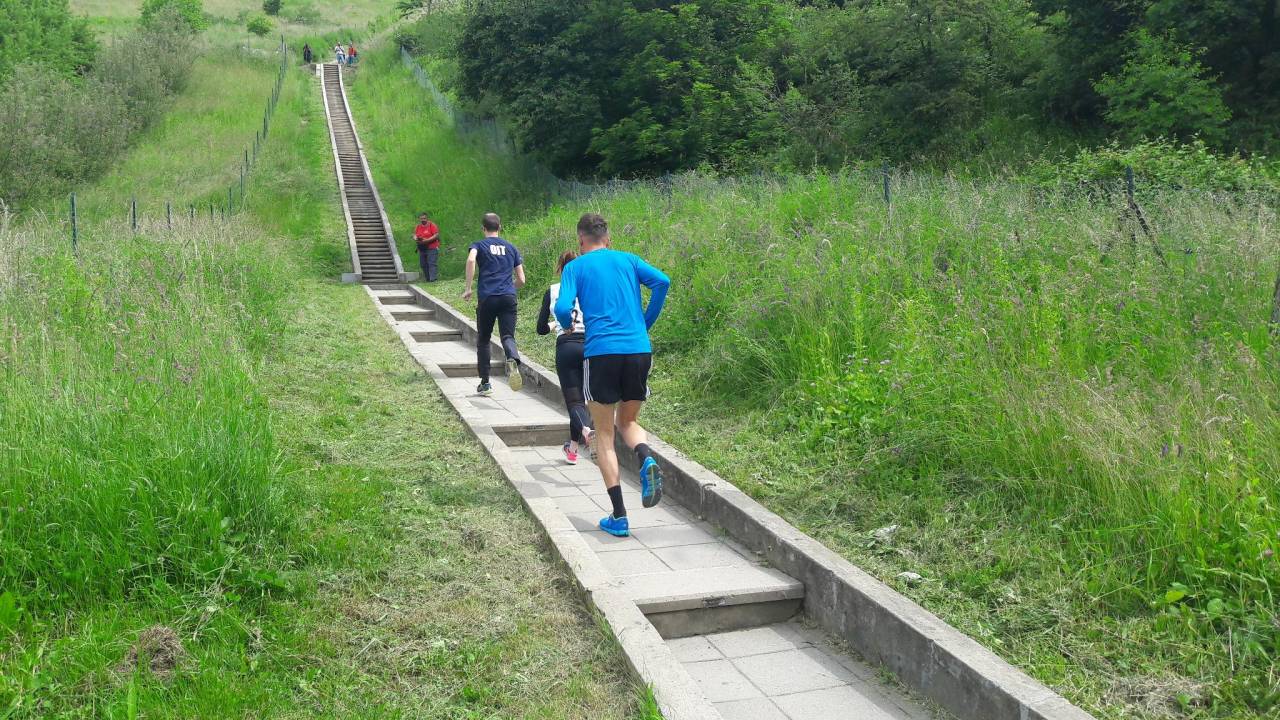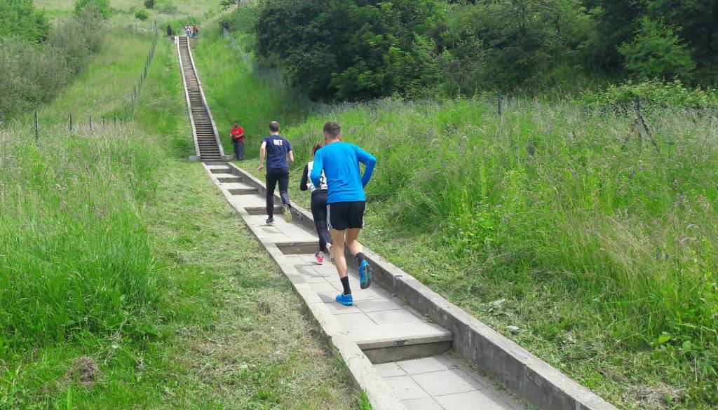 Na že 7. Štengijadi se v teku mešanih trojk po 455 kamnitih stopnicah danes potijo policisti.