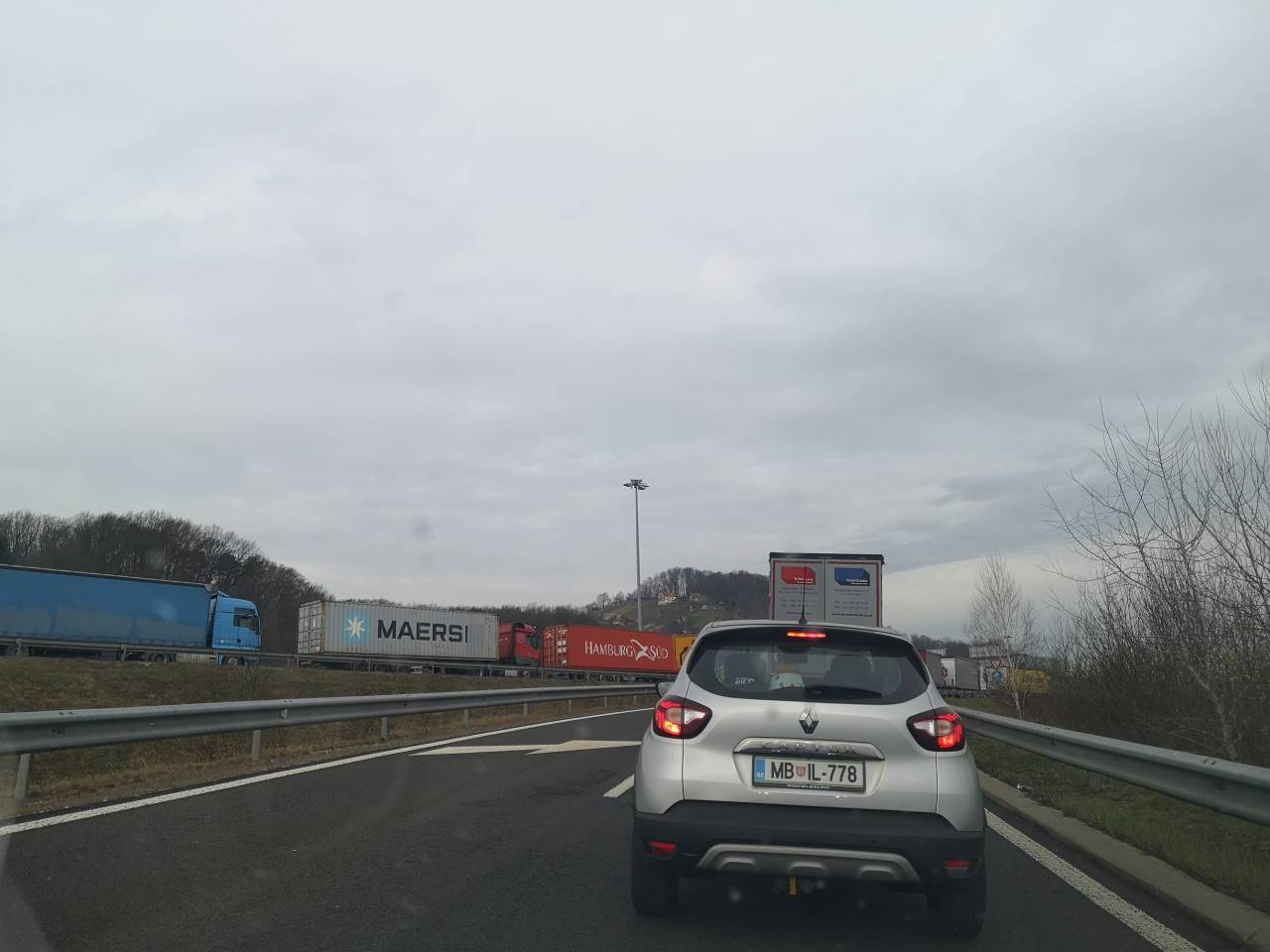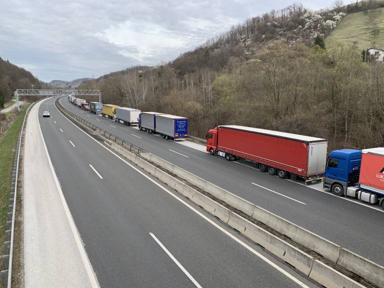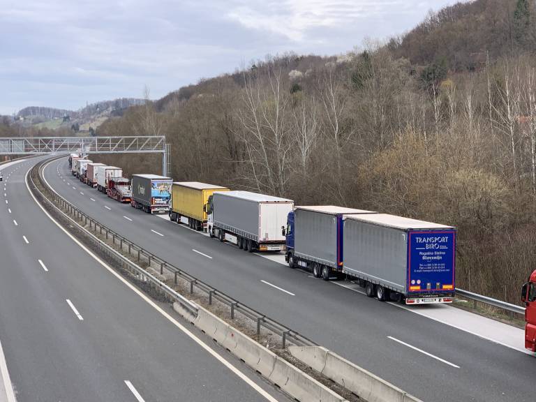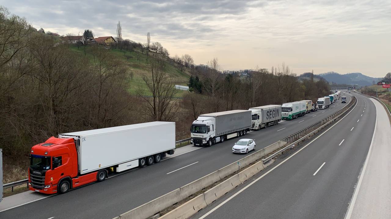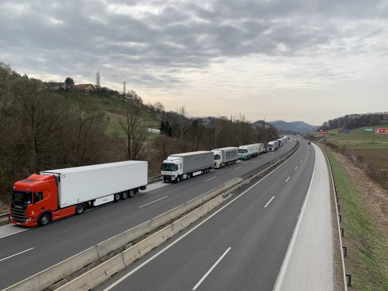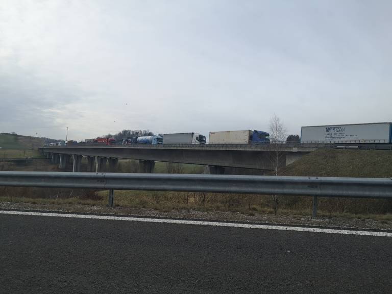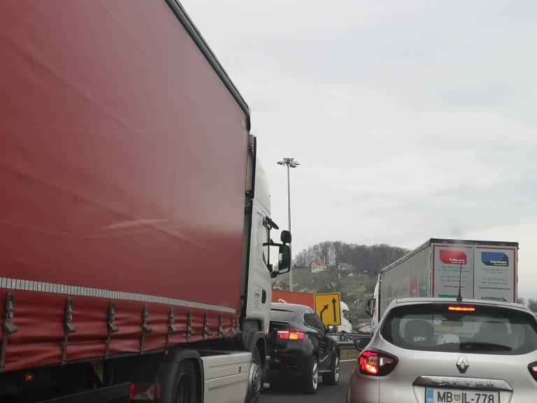 Na štajerski avtocesti med priključkom Maribor vzhod in prehodom Šentilj nastaja zelo dolg zastoj tovornih vozil.