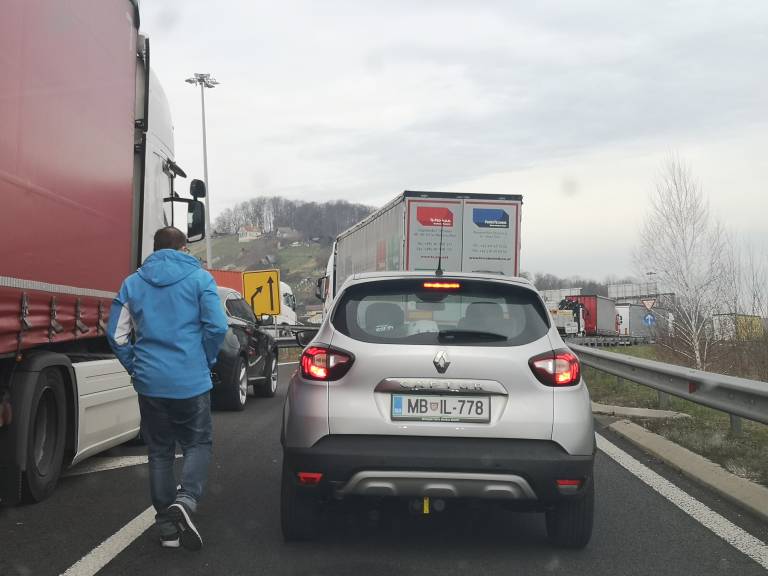 Po podatkih Prometno-informacijskega centra za državne ceste nastaja zastoj v dolžini 16 kilometrov, in sicer na štajerski avtocesti med priključkom Maribor vzhod in prehodom Šentilj. Razlog za zastoje ni nadzor slovenskih organov pri izstopu iz države, poudarjajo slovenski policisti.