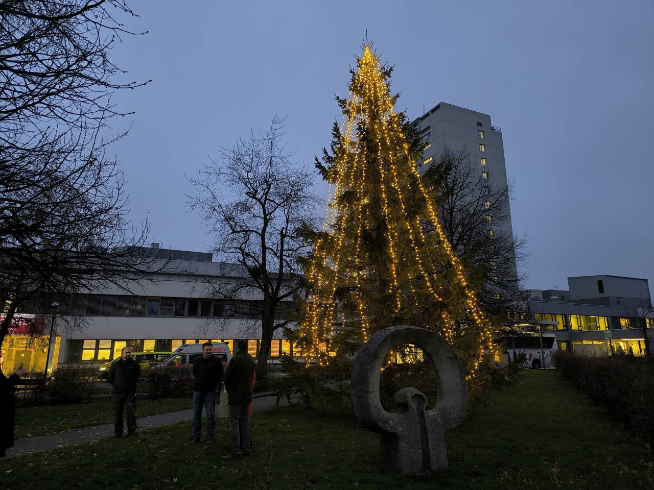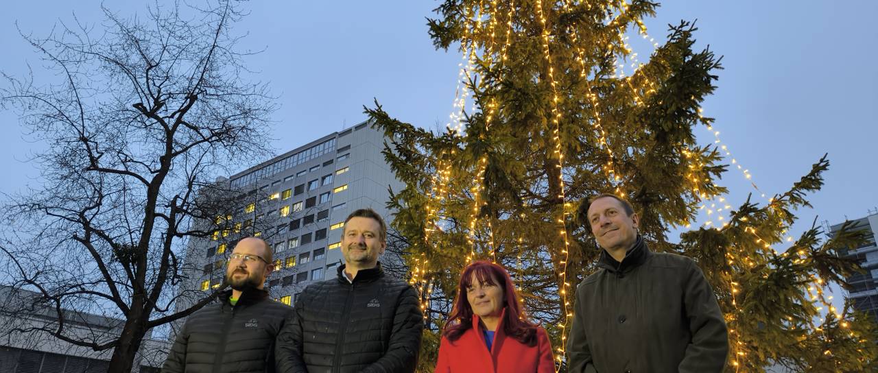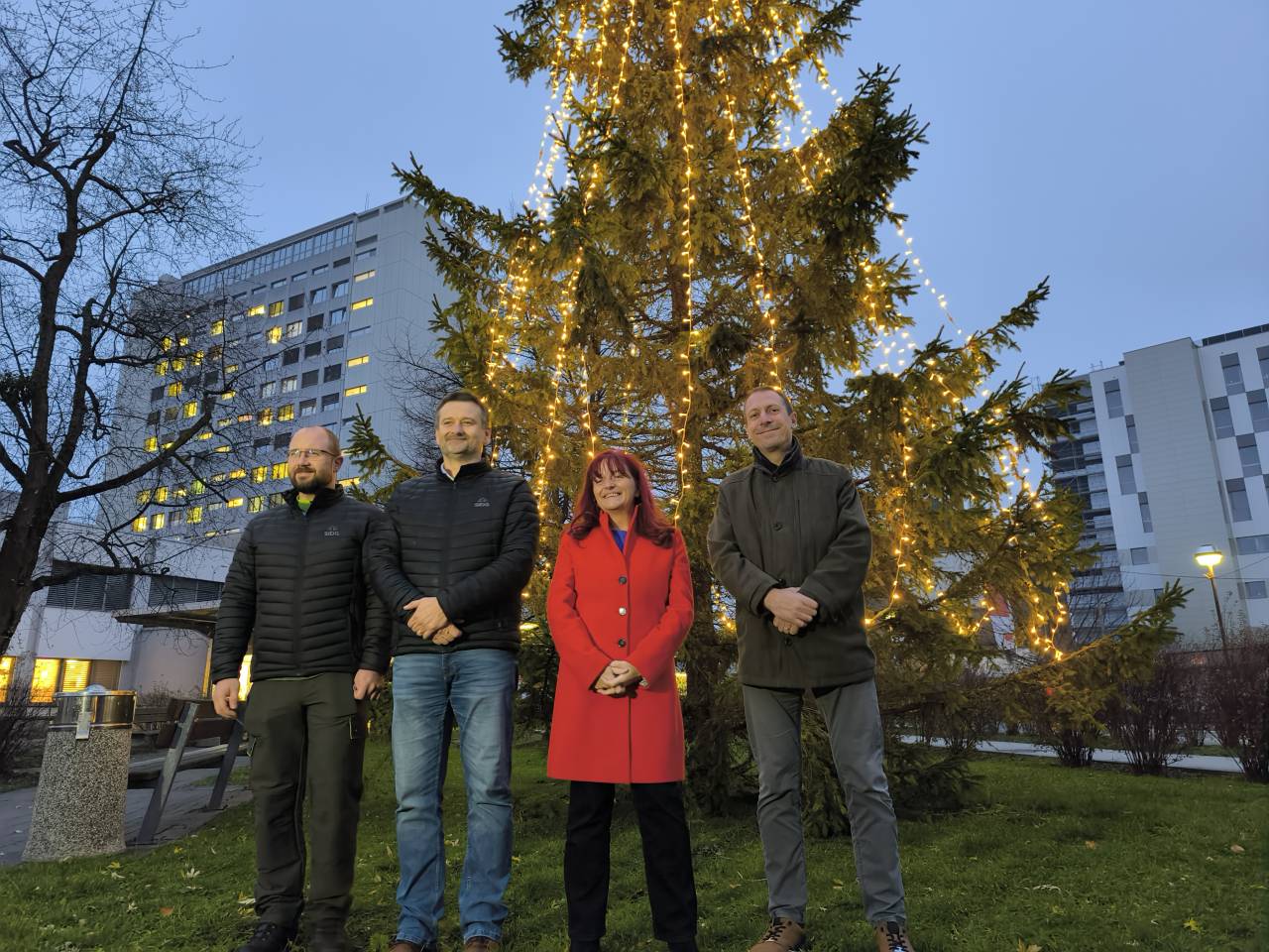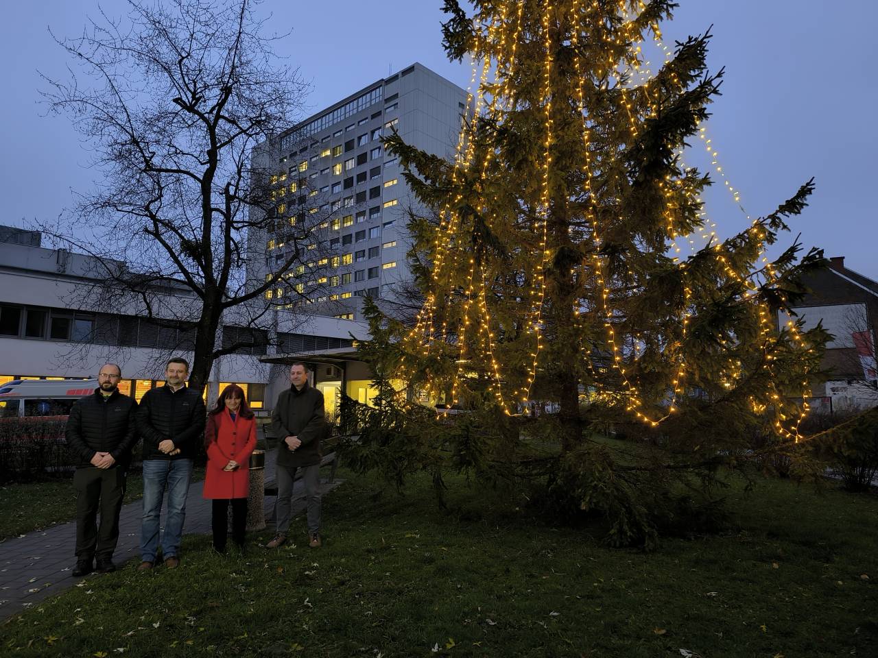 Pred Univerzitetnim kliničnim centrom Maribor je danes zasvetila velika božična smreka, ki so jo že tradicionalno podarili Slovenski državni gozdovi.