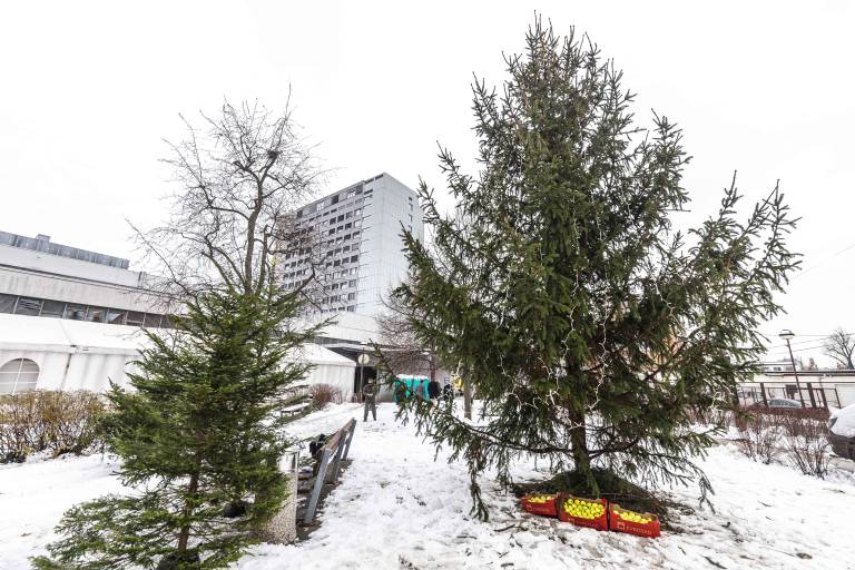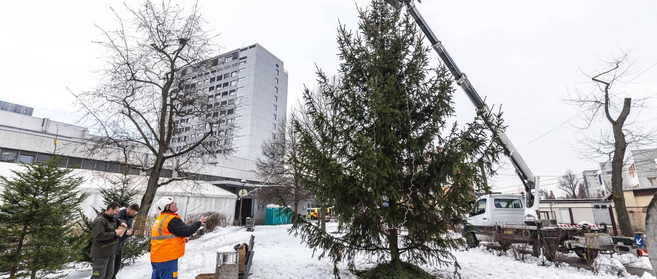 Tako so pred Univerzitetnim kliničnim centrom postavili in okrasili tri manjše in eno veliko božično smrečico, tri smrečice pa bodo postavili tudi v notranje prostore.