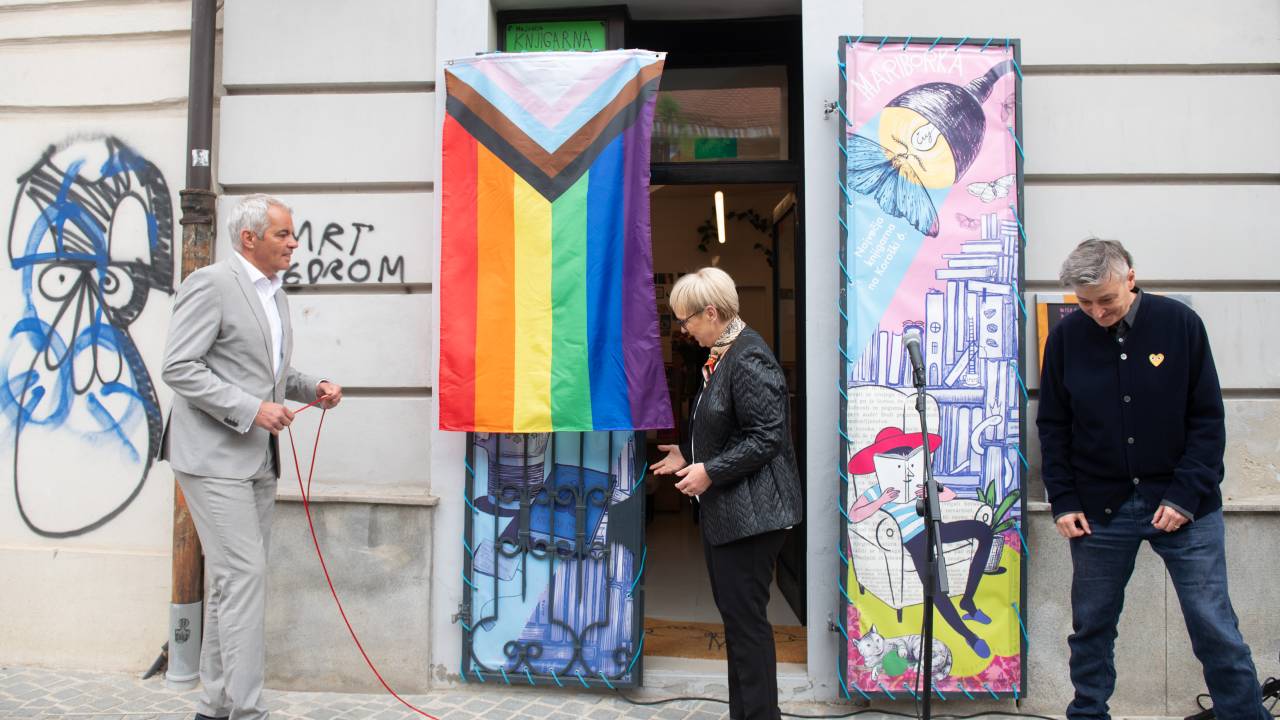 Pred knjigarno Mariborka je potekal dvig mavrične zastave, ki se ga je udeležila tudi predsednica Pirc Musar, ki pravi, da knjigarna Mariborka prostor odprtih misli, je prostor sproščenega duha, je prostor svobode izražanja.