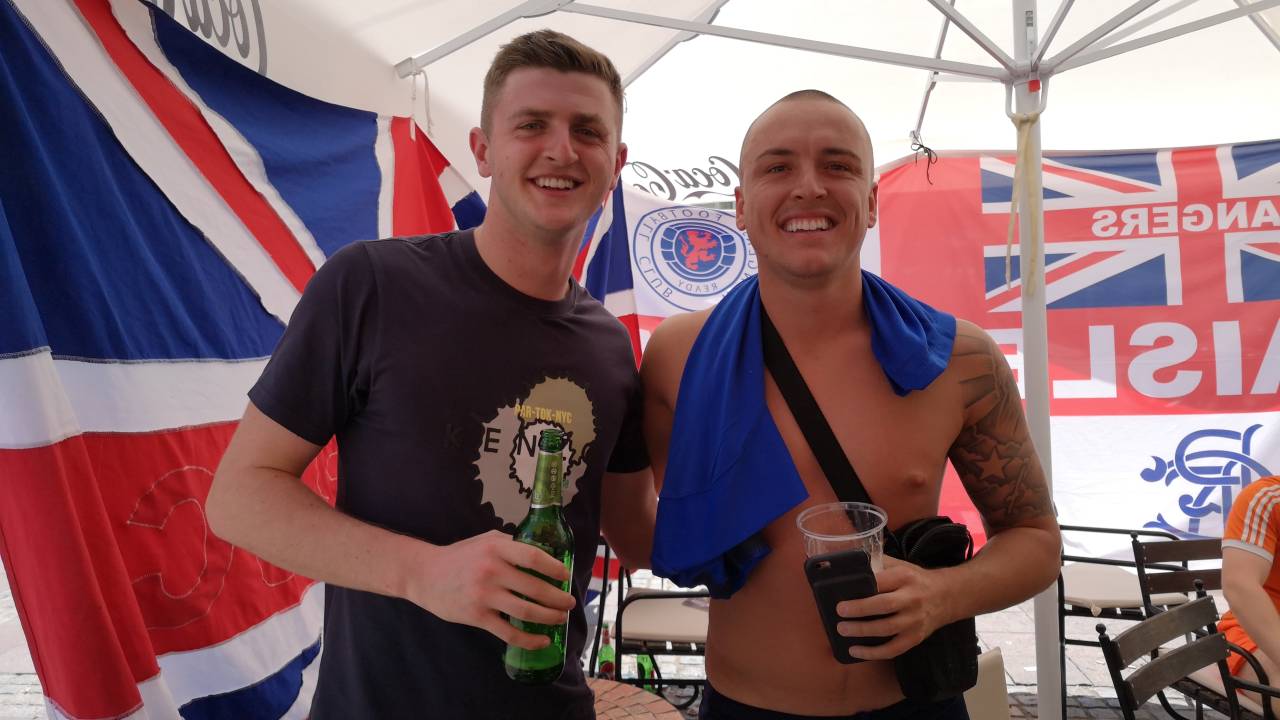 Zmago Rangersov pričajujejo tudi njihovi navijači iz Srbije: »Zmago! Zmago Glasgow Rangersov. Vemo, da so kakovostna ekipa. 2:1 bo za Rangerse.«