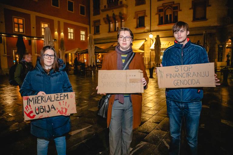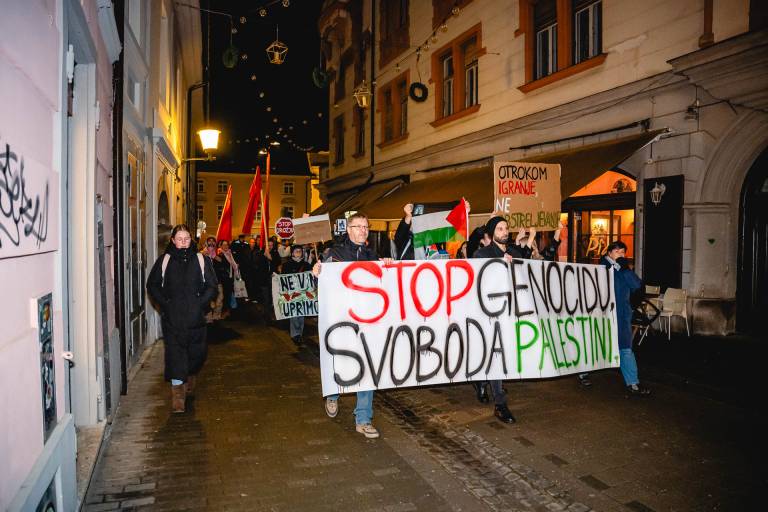 »S protesti, pozivi, bojkoti, peticijami in drugimi pobudami moramo nadaljevati tudi mi. Ne zato, ker mislimo, da bo zaradi tega jutri vse drugače. Ampak zato, ker vemo, da je boj za svobodno Palestino tudi boj za boljši svet za nas vse,« pa je ob koncu protesta dejala Ana Tasič iz Gibanja za pravice Palestincev.