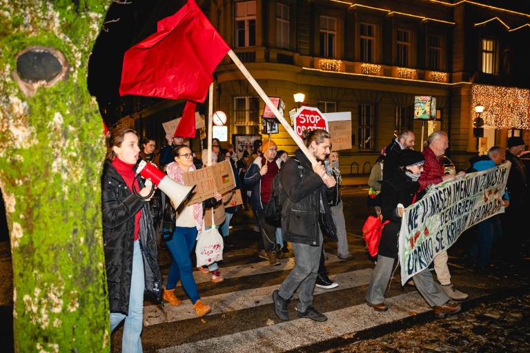Na Glavnem trgu in po ulicah v centru Maribora je danes potekal shod za svobodno Palestino, tokrat ga je organizirala ekosocialistična iniciativa Klas, Pekarna Magdalenske mreže in Gibanje za pravice Palestincev.