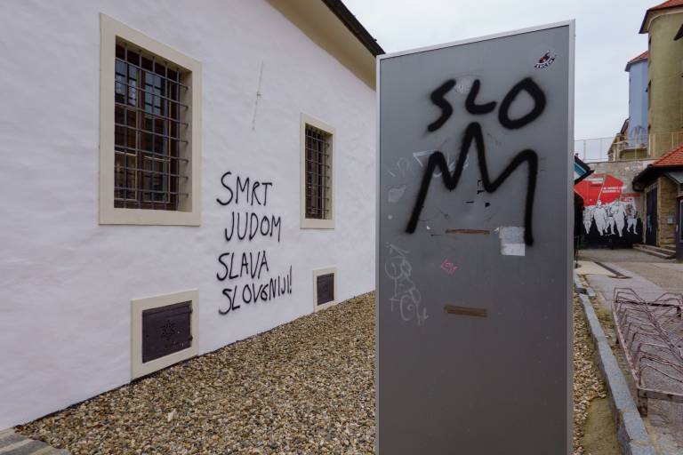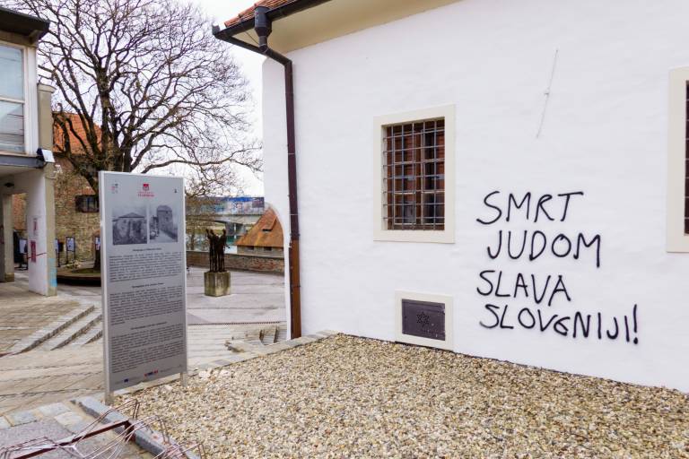 Obiskovalci Sinagoge Maribor so bili včeraj zgroženi, saj je bila fasada stavbe popisana in poškodovana z nestrpnimi napisi zoper Jude.