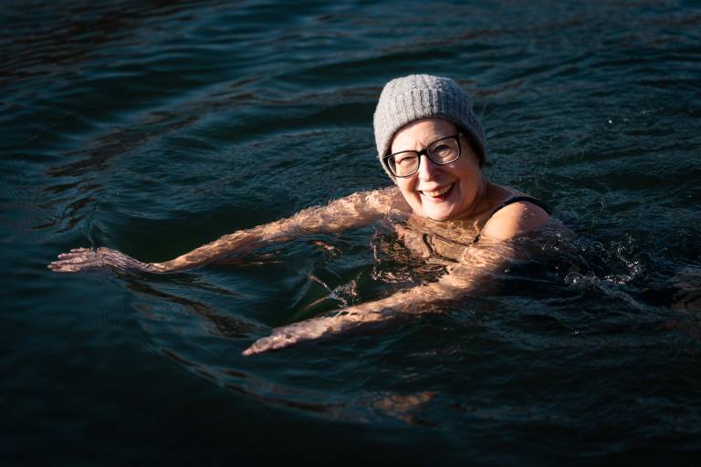 Na bregu reke je kljub mrazu vladalo dobro razpoloženje, med plavalci pa ni manjkalo smeha in spodbudnih besed.