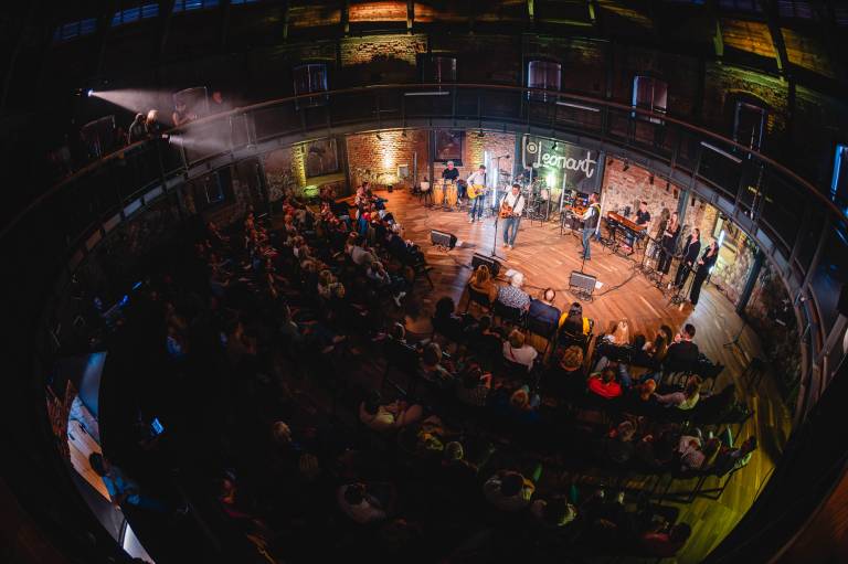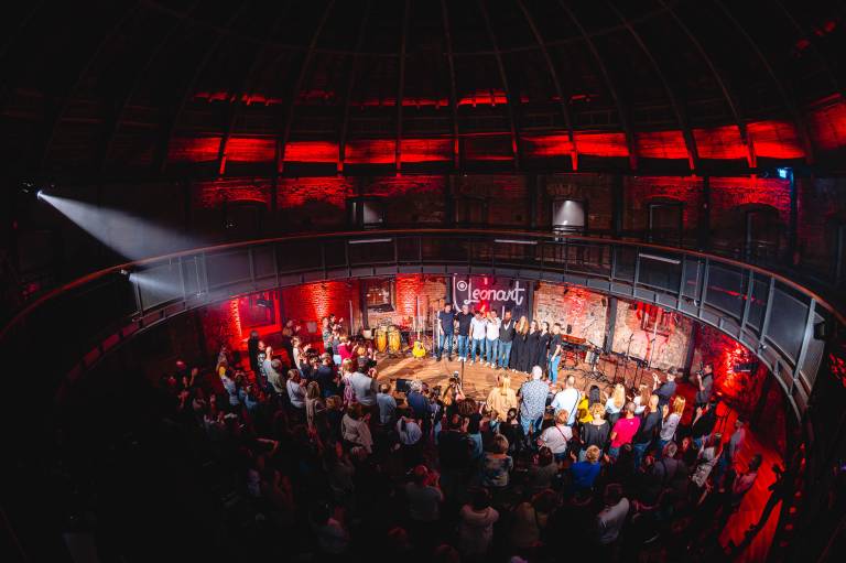 Tokrat je Leonart nastopil v razširjeni zasedbi in po okrogli dvorani so zazvenele uspešnice z albumov Visoko v nebo (2016) in Vrh sveta (2020). Med izvedbami je največ navdušenja požela pesem Moje mesto.