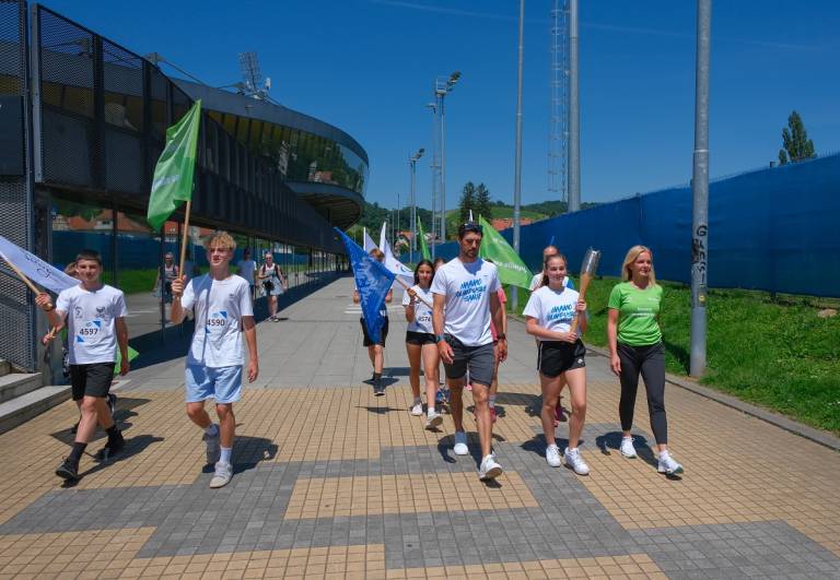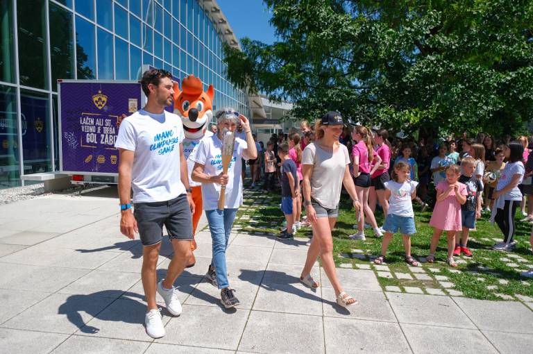 Pod okriljem Športne zveze Maribor so danes »Slovensko baklo na poti v Pariz« sprva pospremili do Osnovne šole Franca Rozmana Staneta.