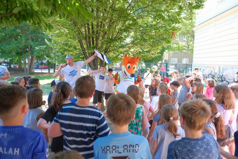 »Ko osvojiš uvrstitve na prve olimpijske igre, s tem dosežeš nekaj neverjetnega. Prvih ne pozabiš nikoli,« je pred Osnovno šolo Bratov Polančičev dejal hokejist Miha Verlič, ko je nagovoril osnovnošolce.