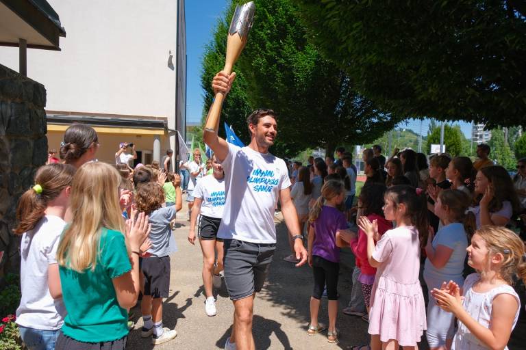V spremstvu mariborskih otrok so »Slovensko baklo na poti v Pariz« sprejeli v štirih osnovnih šolah.