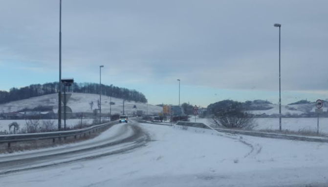 Že nekaj trenutkov kasneje pa se je sneg začel oprejemati cestišča, prišlo je tudi do prvih zdrsov iz cest. Na terenu so sicer že vzdrževalci cest.