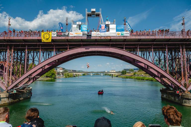 Navdušenci nad adrenalinom so lahko danes spremljali pravi spektakel - odvija se 25. tekma v akrobatskih skokih v Dravo.
