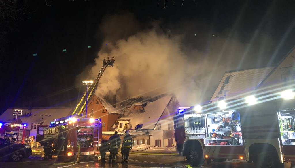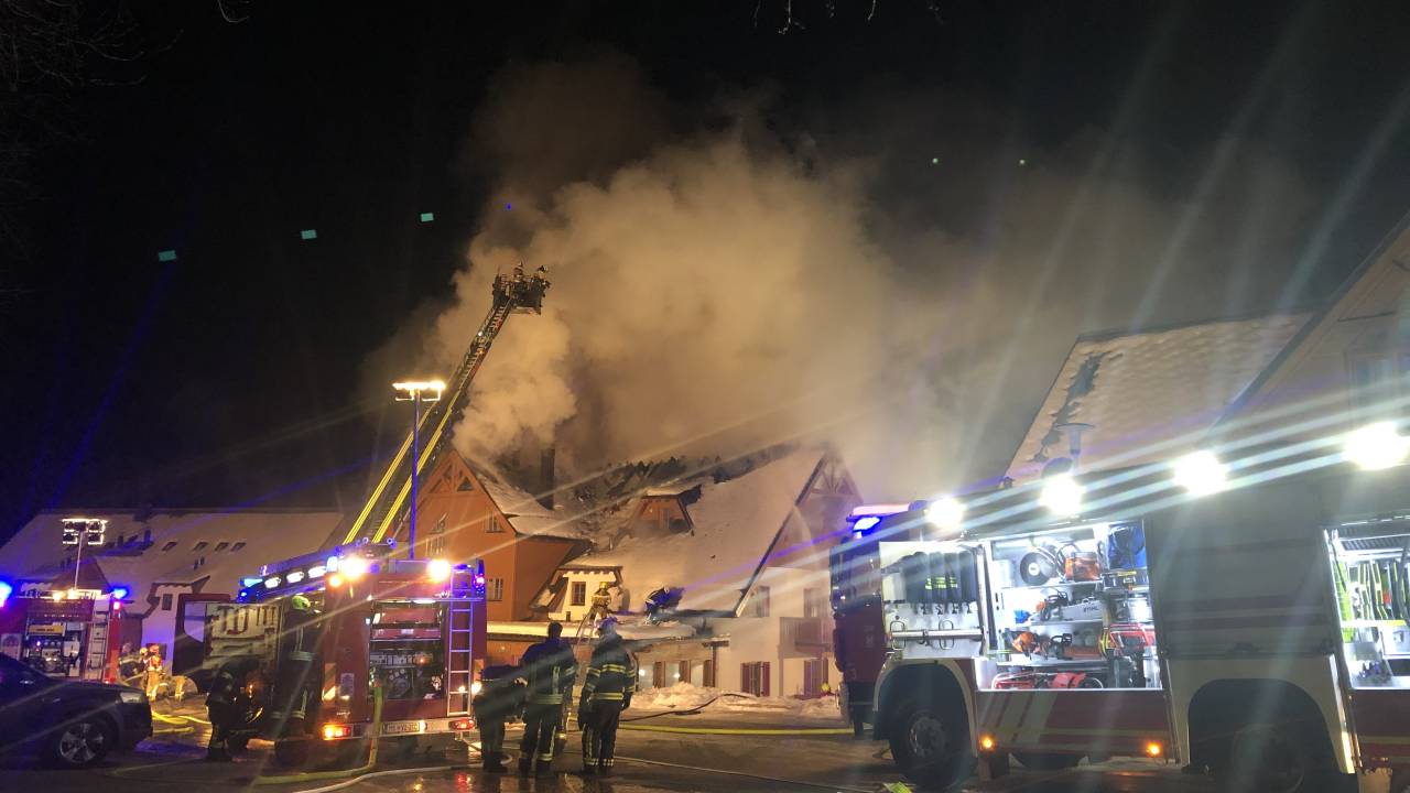 Ognjeni zublji na vrhu Pohorja povzročajo škodo na stavbi. Plameni so vidni vse do Maribora.