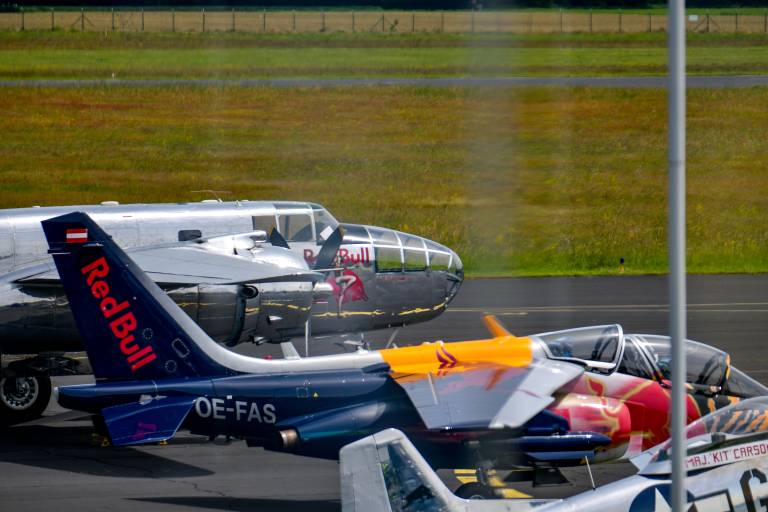 Na mariborsko letališče so minuli vikend prileteli člani avstrijske skupine The Flying Bulls, ki so izvajali tradicionalni trening pred začetkom sezone letalskih mitingov.