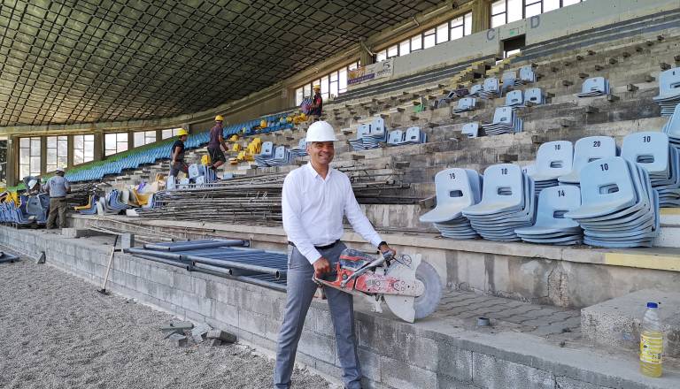 FOTO in VIDEO: Arsenovič slikovito napovedal začetek rušenja stare tribune