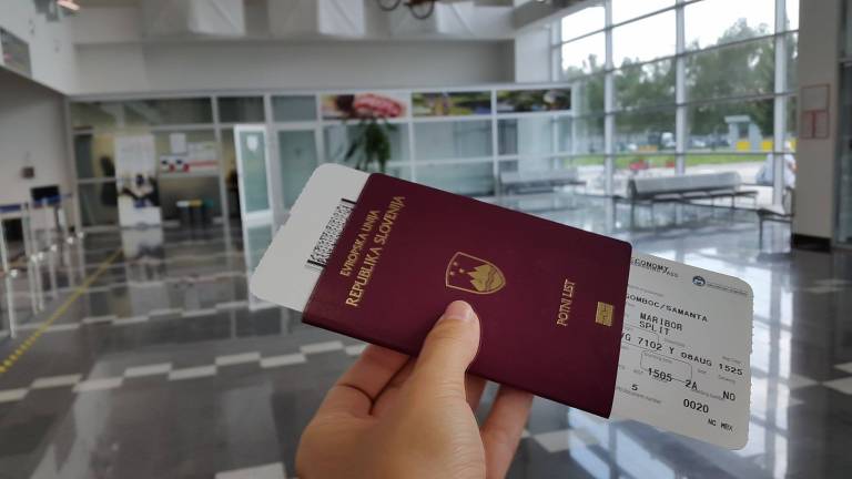 Dobro razpoloženi Gillian in Borisu Bobku ter novinarjem in ostalim potnikom se je na letu za Split pridružil tudi mariborski podžupan Saša Pelko.