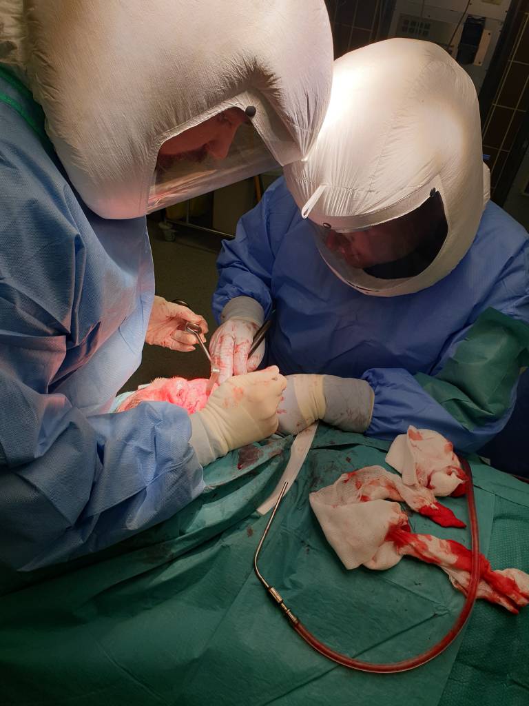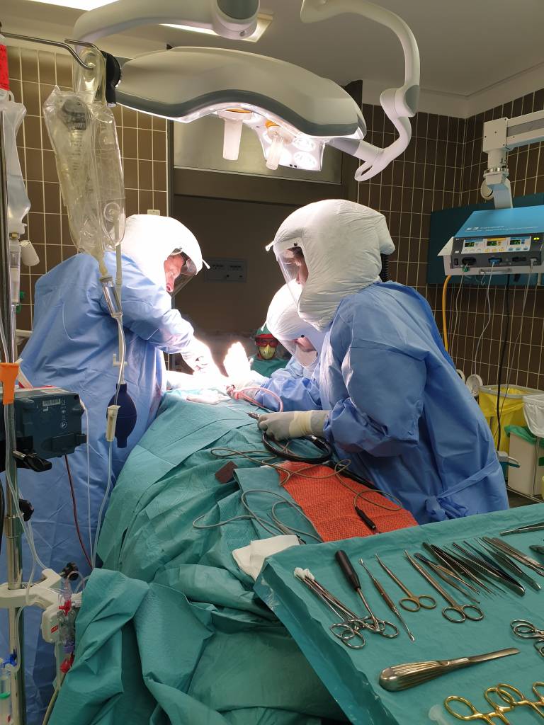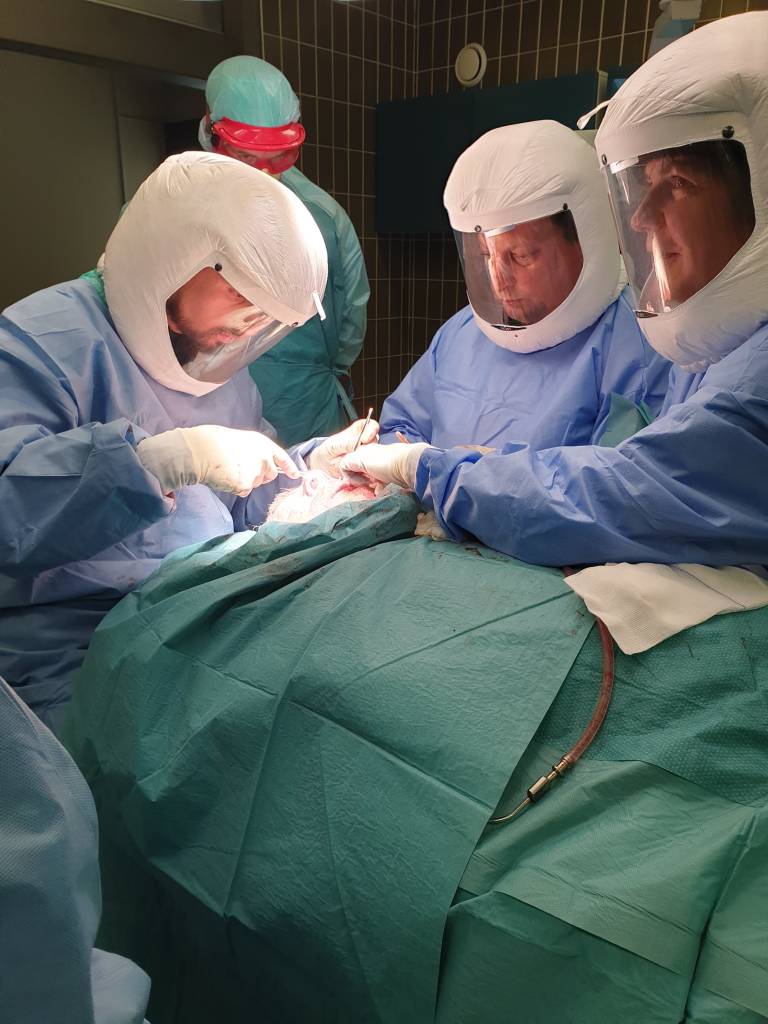 Kirurško delo bi po njegovih besedah moralo trajalo štiri ure, a se je poseg zaradi ostalih okoliščin podaljšal še za dve uri: »Dolžina posega je bila nekoliko daljša zaradi uporabe popolne varovalne opreme, v katero smo bili oblečeni vsi, ki smo bili prisotni v operacijski dvorani.«