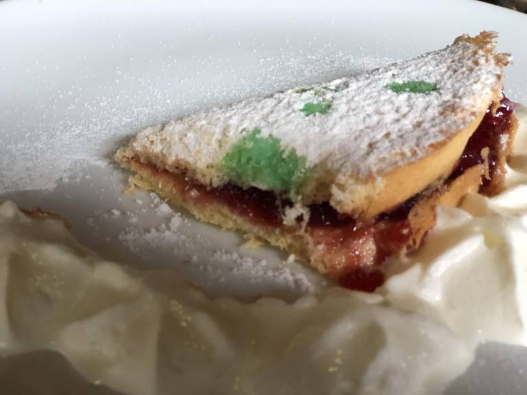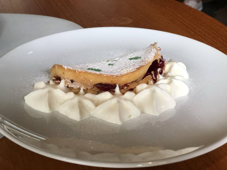Polovico pohorske omlete moramo namreč namazati z brusničnim džemom in jo prepogniti, na vrh potrositi malo sladkorja in mentolovega likerja, ki doda pridih pohorskih gozdov. Okoli pohorske omlete dodamo še sladko smetano in jo nujno postrežemo še vročo.