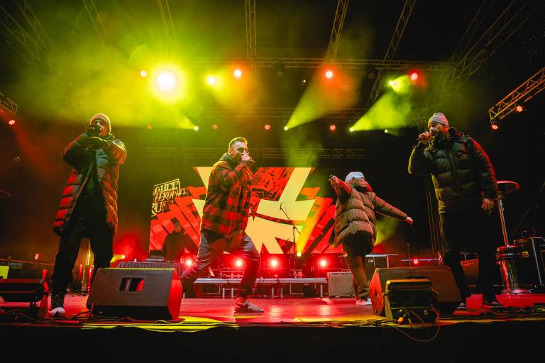 Sinoči je na Trgu Leona Štuklja nastopil Emkej, za njim pa so na oder prišli še ostali člani skupine Tekochee Kru.