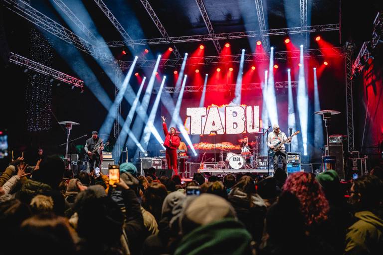 Silvestrski večer je pred nami. Predzadnji letošnji praznični koncert v Mariboru je postregel z energičnim nastopom skupine Tabu, ki je mnoge obiskovalce spodbudila k glasnemu prepevanju in plesanju.