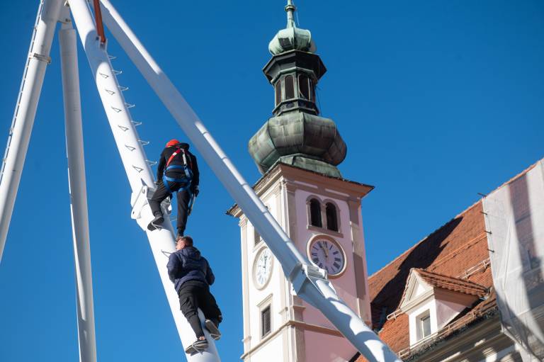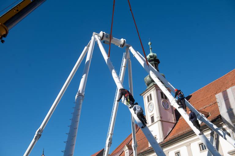 V četrtek je bila na Glavnem trgu postavljena tudi letošnja praznična smreka, ki so jo podarili Mariborčani.