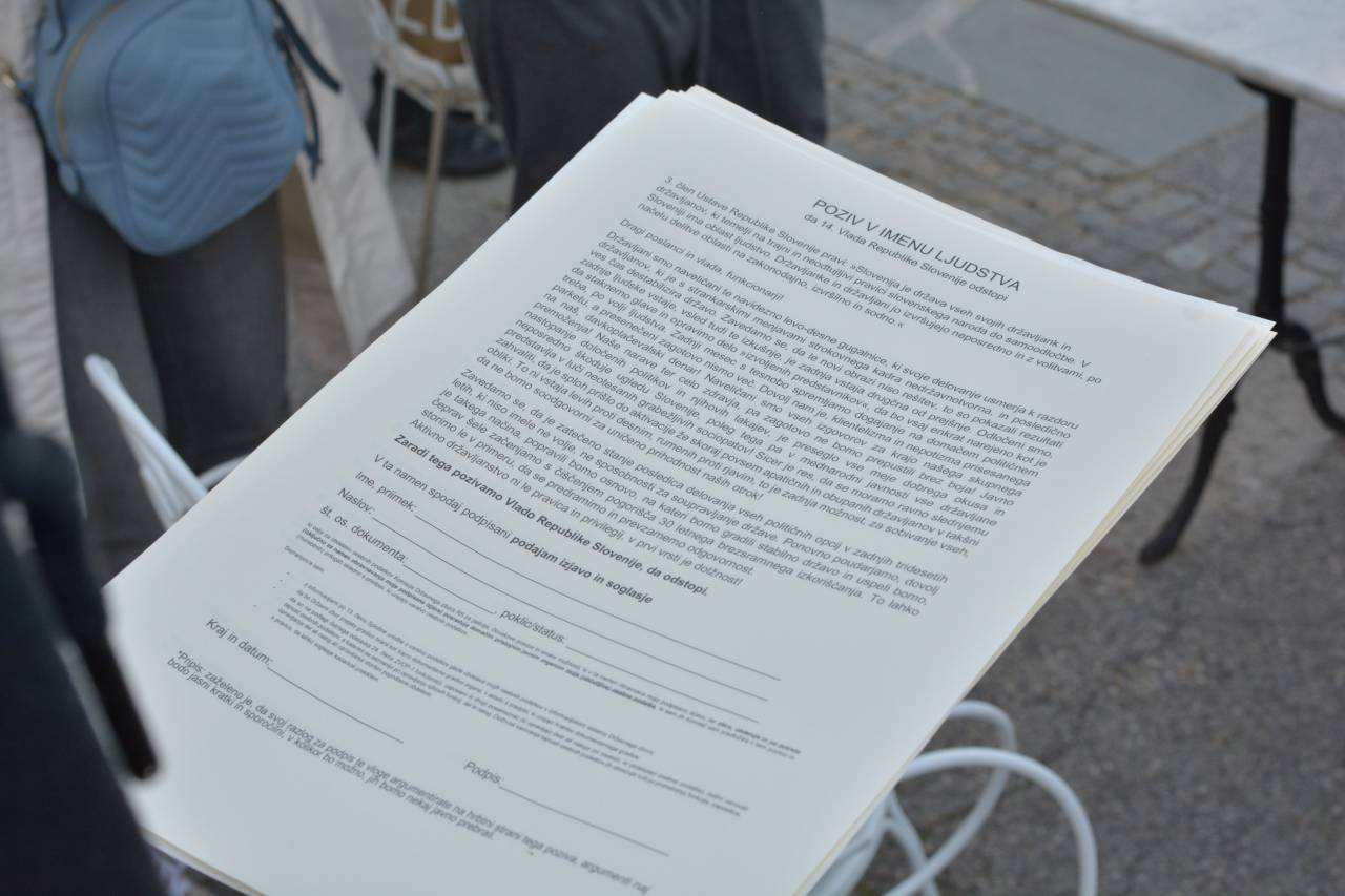 Protestniki so danes prvič zbirali tudi pisne pozive k odstopu vlade. »Državljani smo naveličani te navidezno levo-desne gugalnice, ki svoje delovanje usmerja k razdoru državljanov, ki je s strankarskimi menjavami strokovnega kadra nedržavotvorna in posledično ves čas destabilizira državo. Zavedamo se, da le novi obrazi niso rešitev, to so pokazali rezultati zadnje ljudske vstaje,« so zapisali.