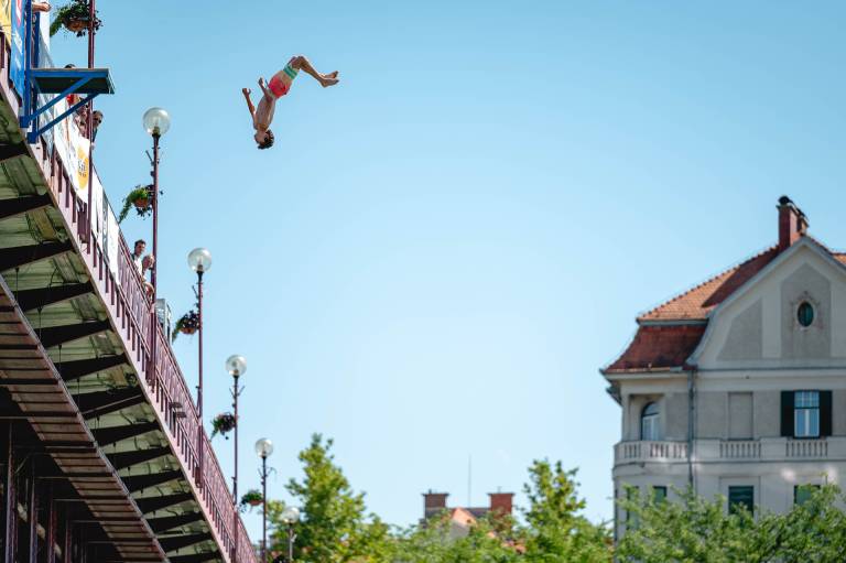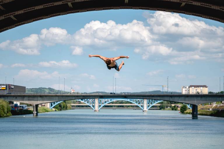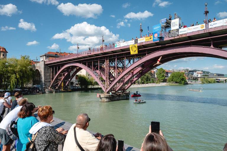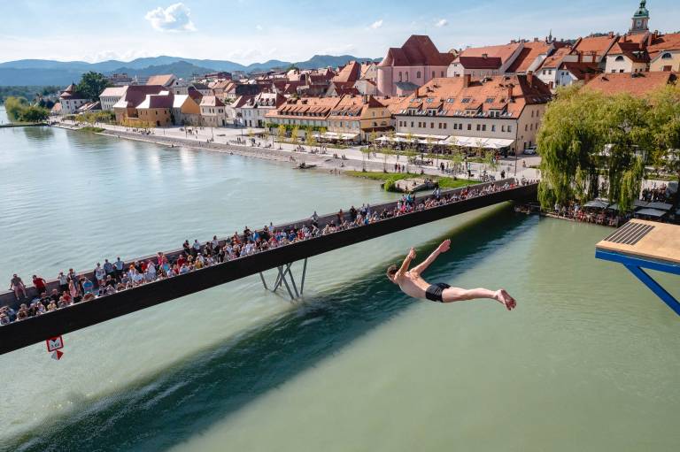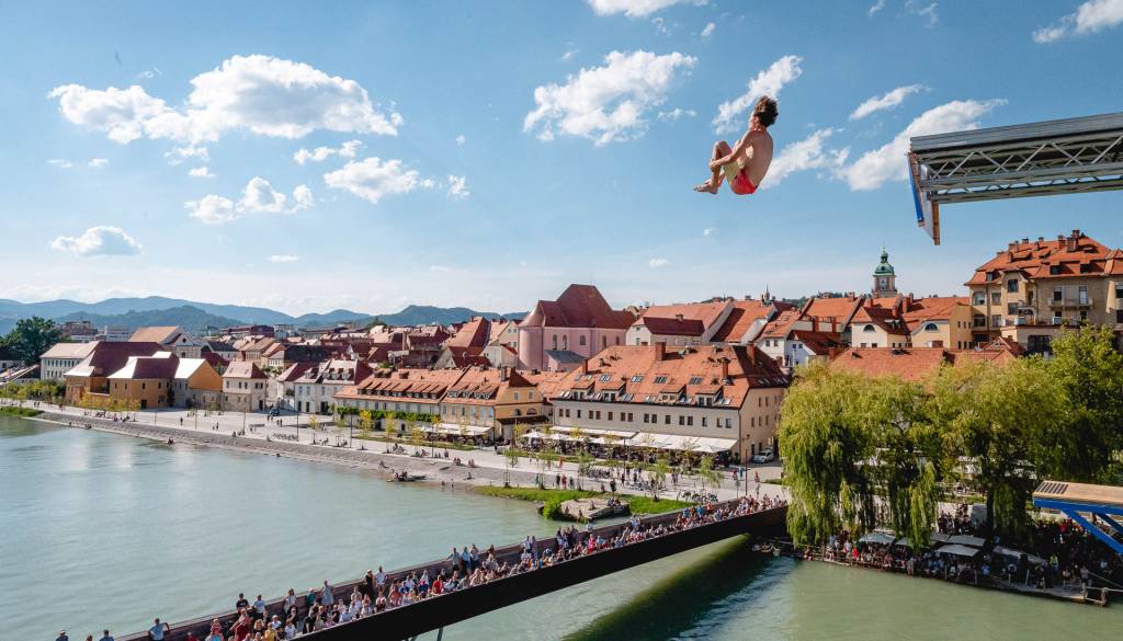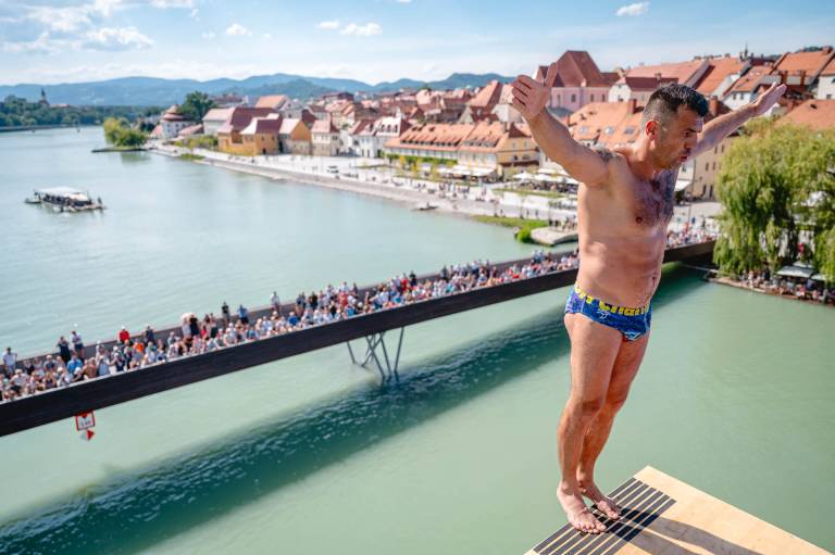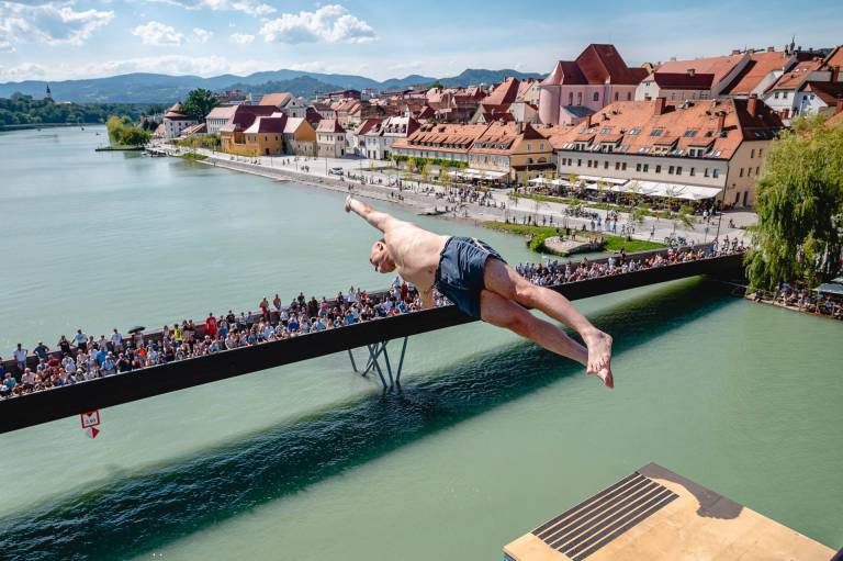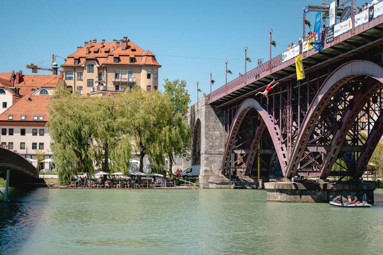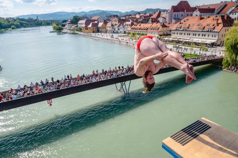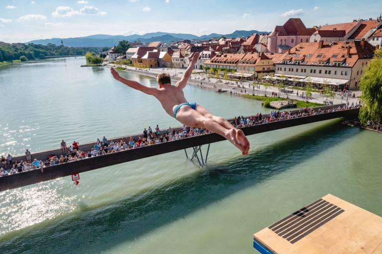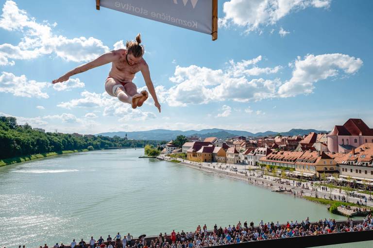 Danes se je na Lentu odvila mednarodna tekma v akrobatskih skokih v reko Dravo, ki poteka pod okriljem Športnega društva Adrenalin K.O. in se je letos odvila že štiriindvajsetič.