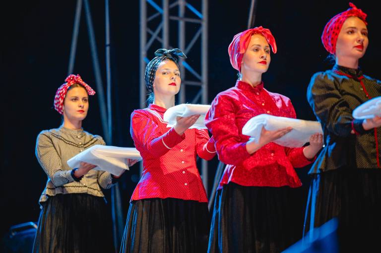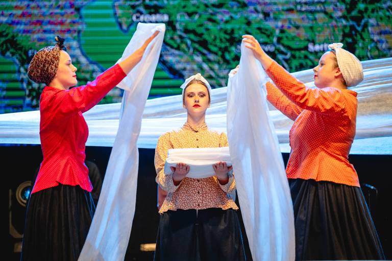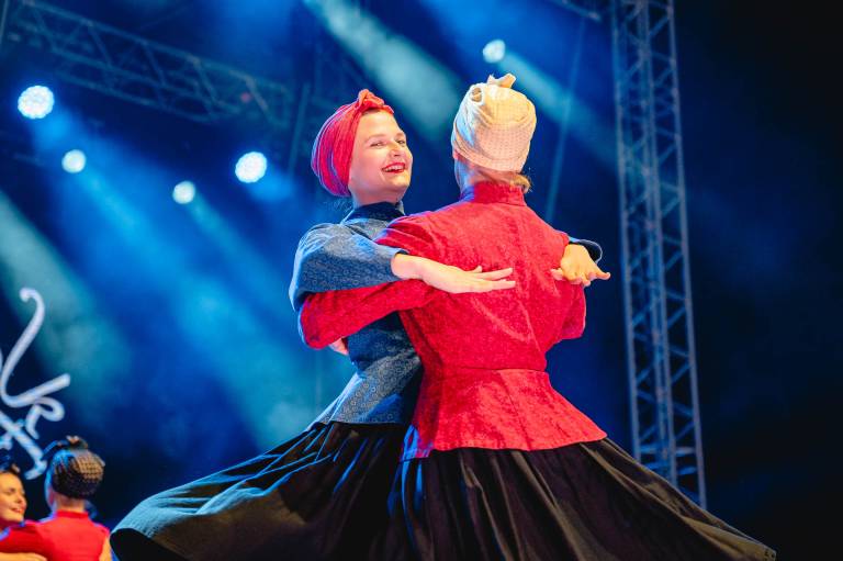 Folkart nas bo razveseljeval vse do sobotnega zaključka na Glavnem odru. Do takrat boste v živahne barve oblečene plesalce lahko večkrat ujeli na različnih festivalskih prizoriščih.