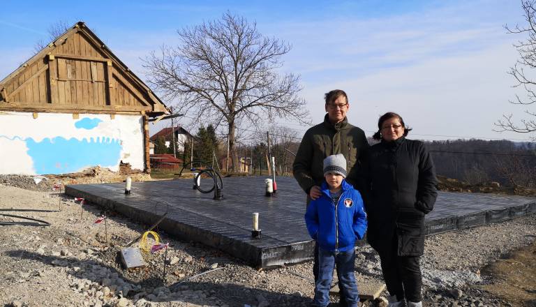 »Nov začetek in novo življenje,« v en glas pravita Maksimiljan in Suzana Vasle, ko nam v družbi svojega šestletnega sina Vida razkazujeta svojo novo hiško v Vinički vasi. Zgradili so jo s pomočjo zbranih donacij in veliko ur prostovoljskega dela. Zato je družina Vasle ob današnji predaji ključev nove hiše večkrat ponavljala veselje in hvaležnost dobrim ljudem za pomoč v stiski.