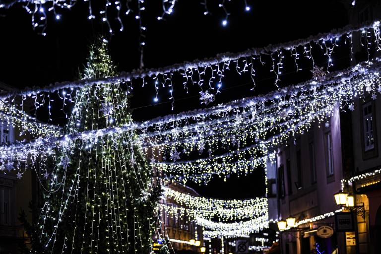 A smrečice ne morejo primerno zasijati, če jih ne kitijo lučke. In prav danes je mesto čarobno zasijalo.
