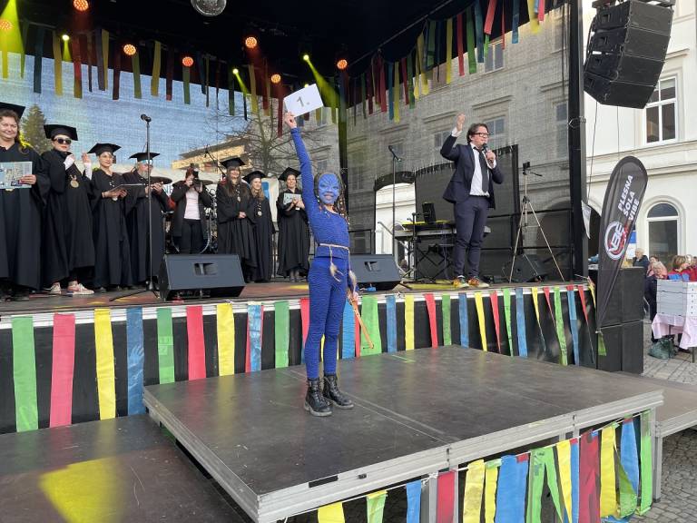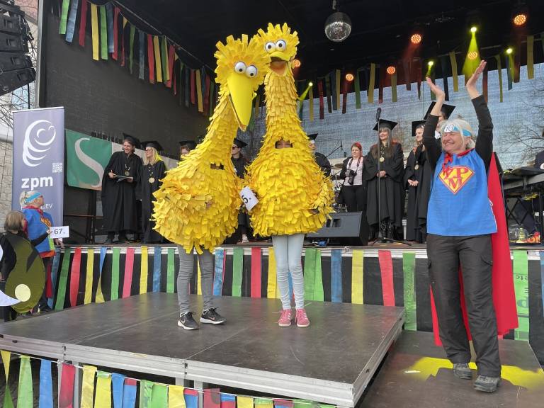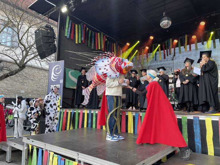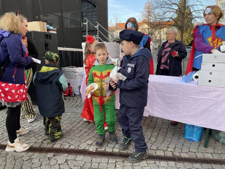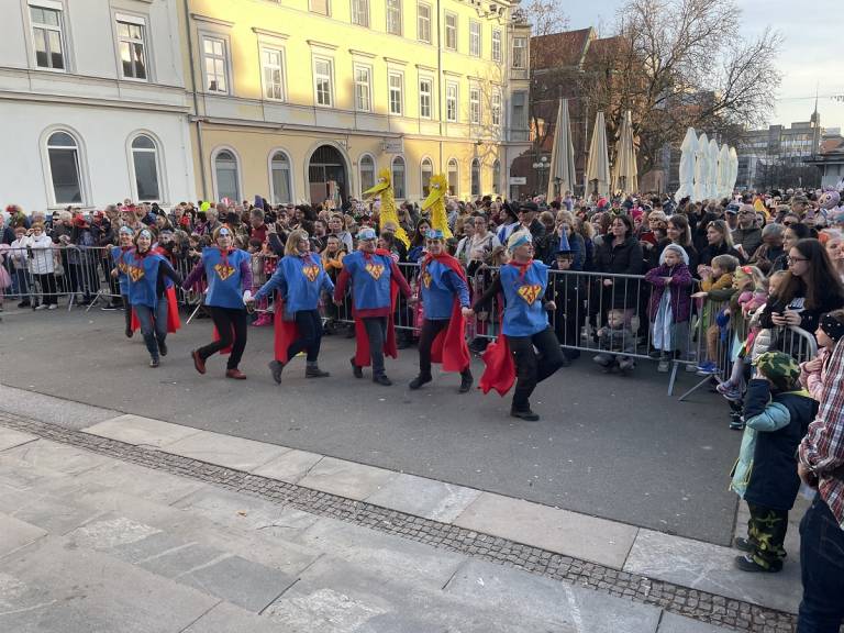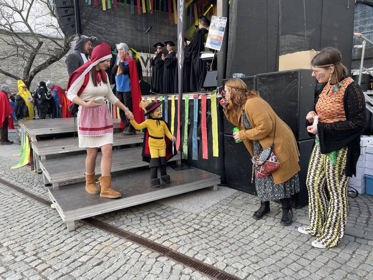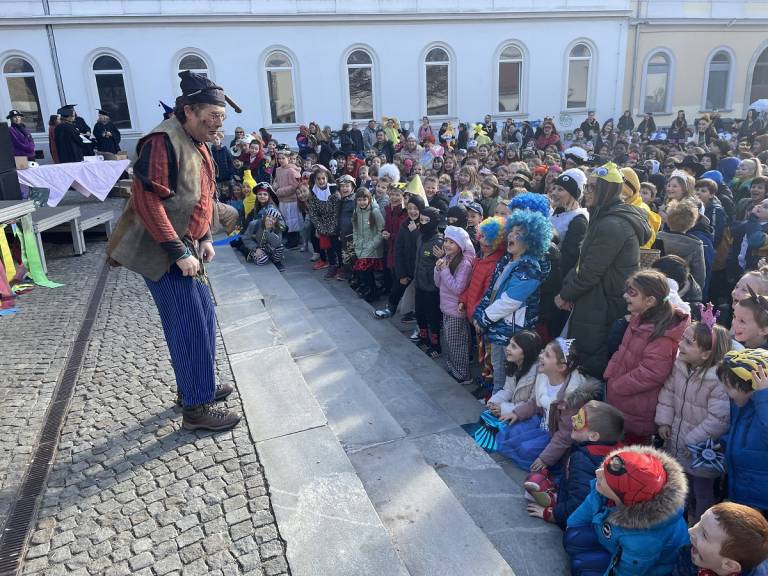 Norčavo rajanje na Trgu svobode se je v dopoldanskem času pričelo z gusarsko predstavo za otroke pod okriljem Teatra Cizamo. Zbralo se je približno 800 otrok iz šol in vrtcev, ki so predstavili skupinske maske.