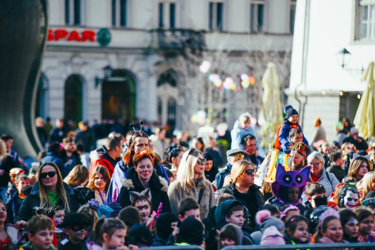 Maske vseh barv in velikosti so se zbrale na Trgu Svobode, in ob spremljavi zabavno glasbenega programa pomagale priklicati pomlad.